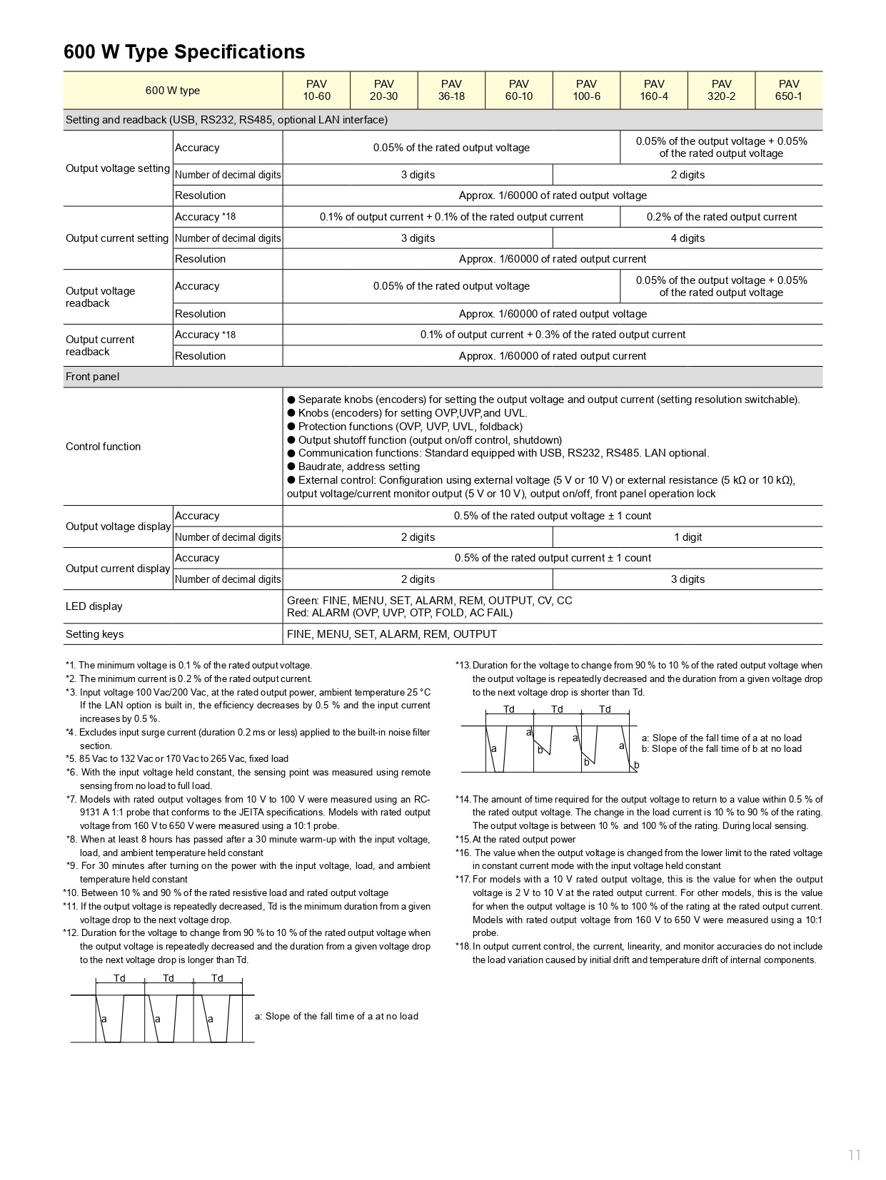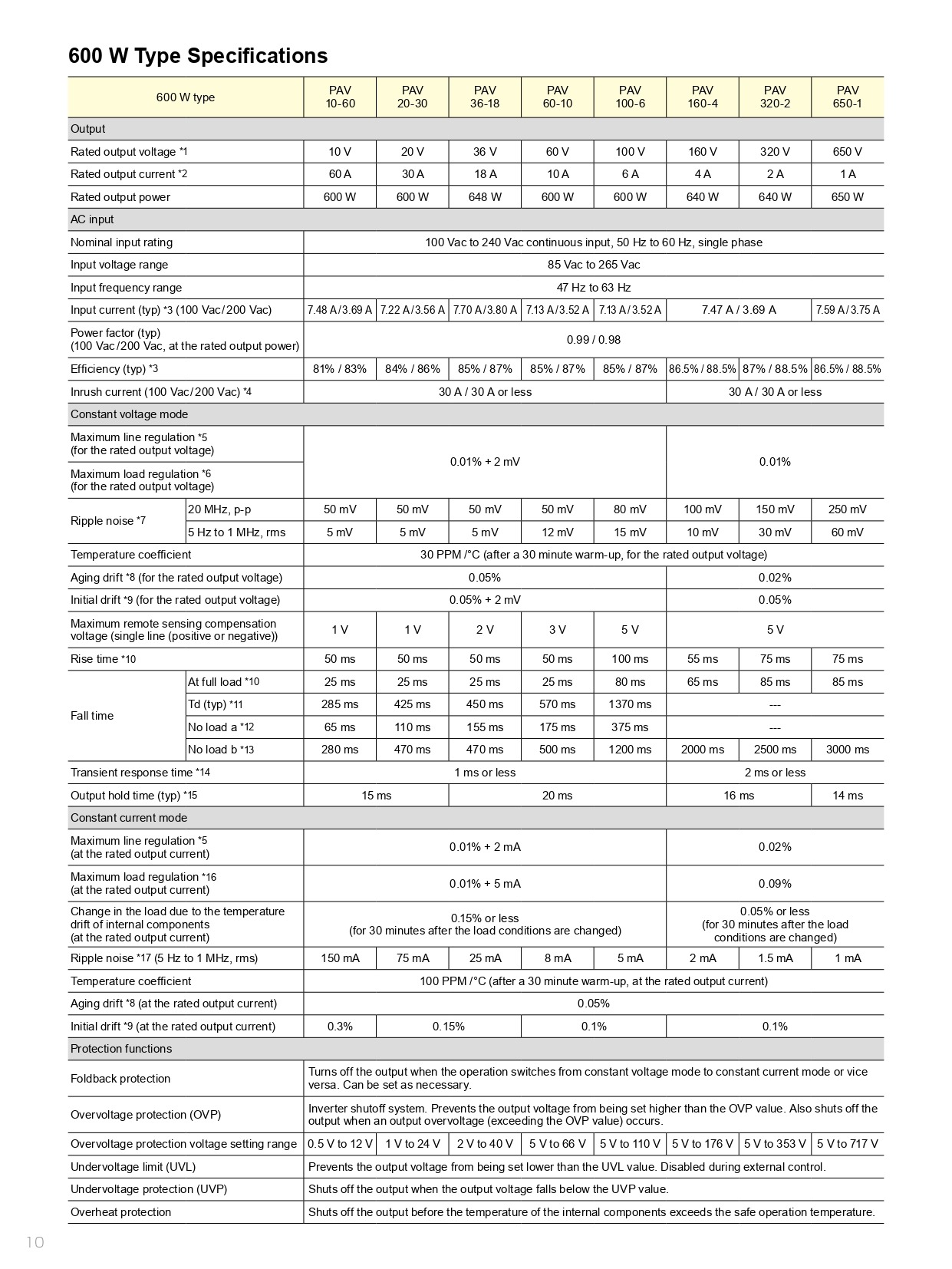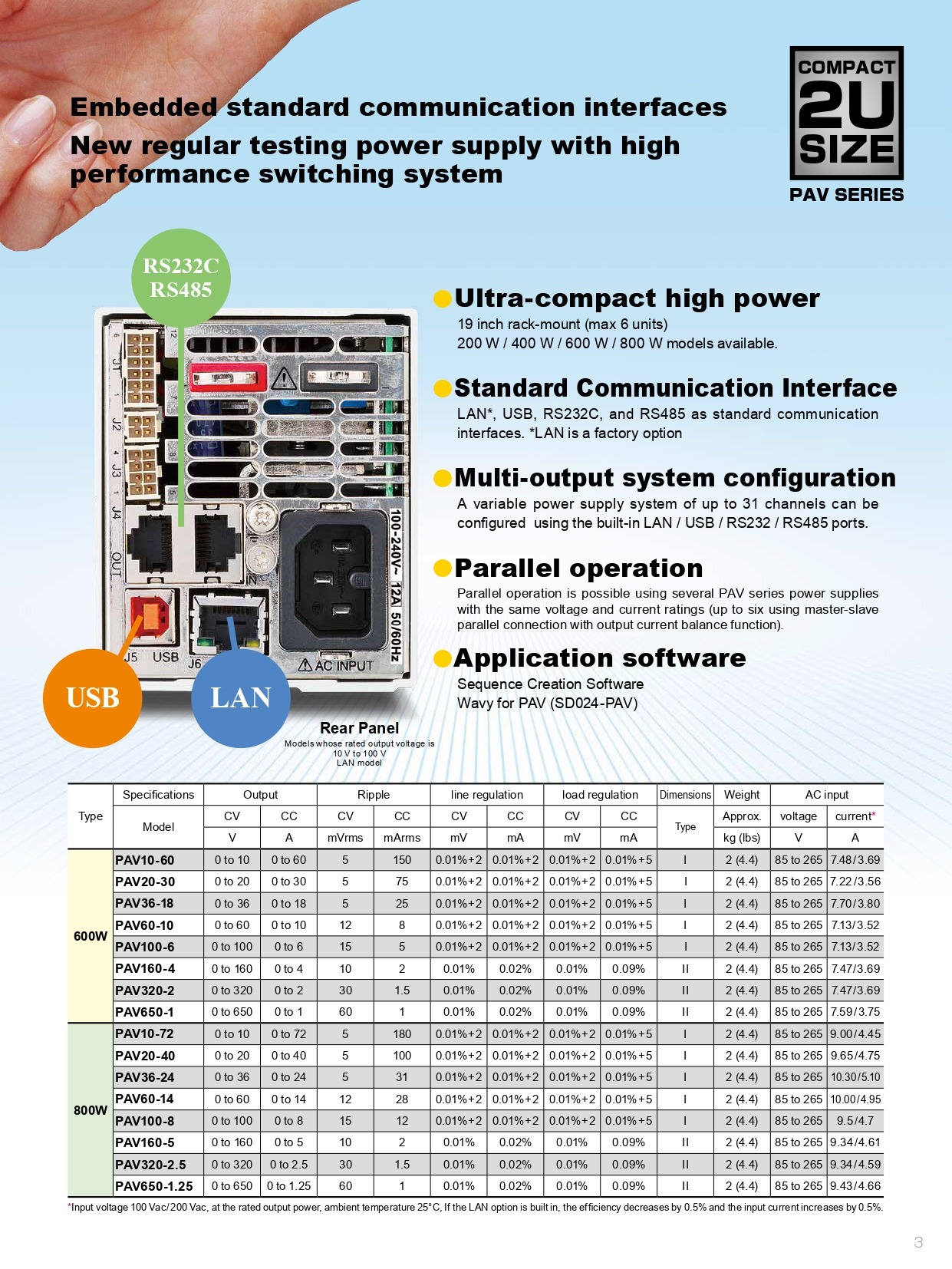 | PAV10-60 | 0 〜 10V / 0 〜 60A / 600W |