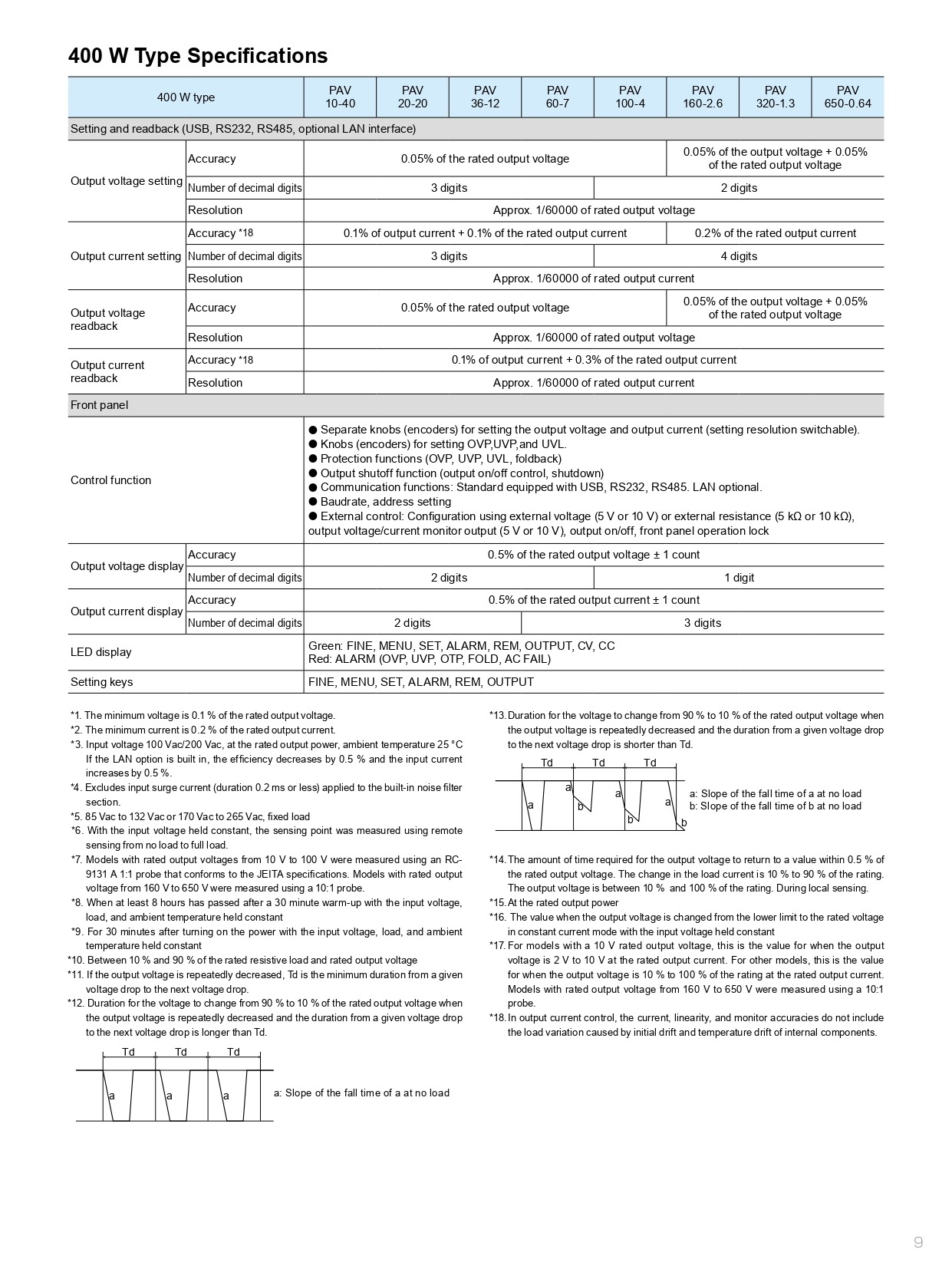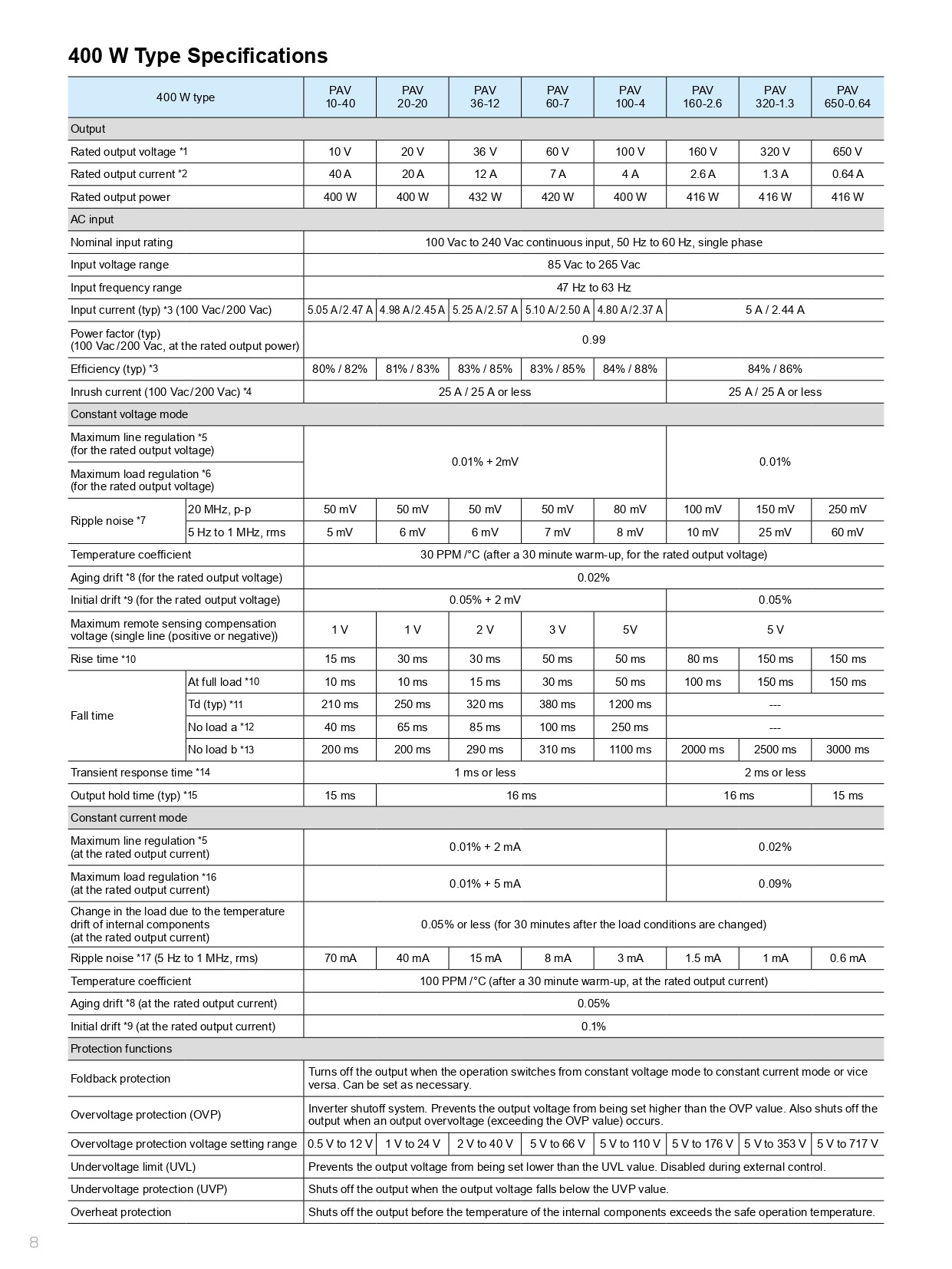 | PAV10-40 | 0 〜 10V / 0 〜 40A / 400W |
