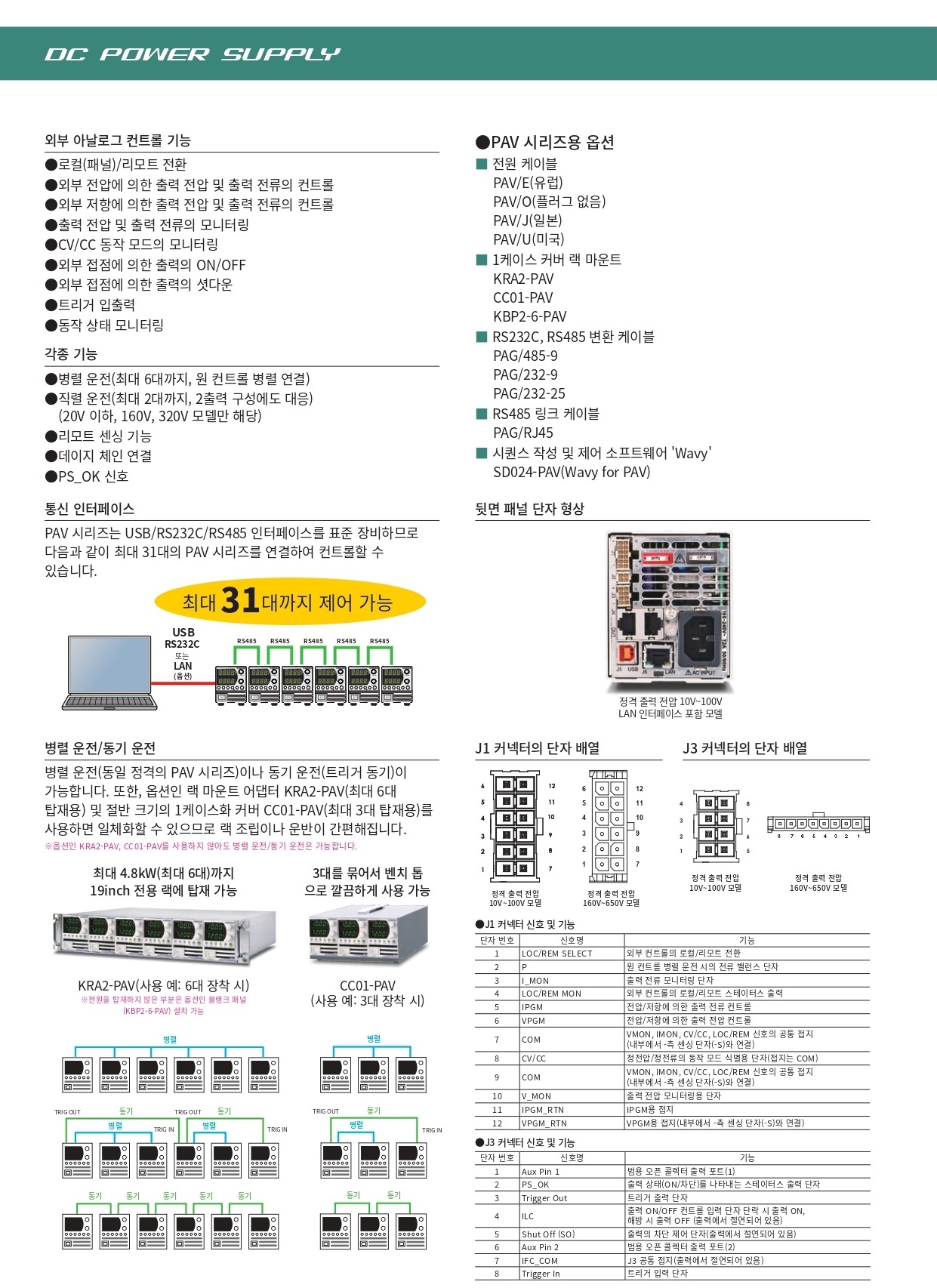 동일한 전원, 전류 정격의 PAV 시리즈를 이용하여 병렬 운전이 가능합니다. (최대 6대까지 출력 전류 밸런스 기능 포함 원 컨트롤 병렬 접속)