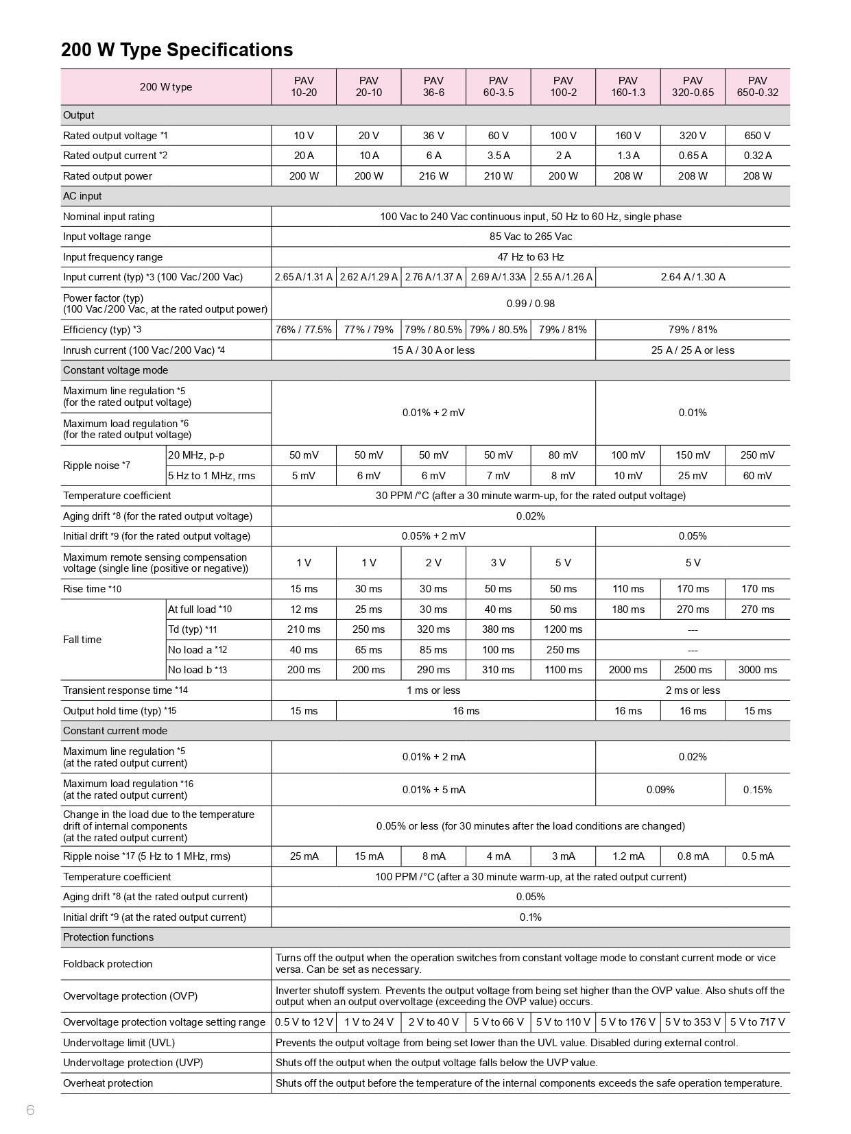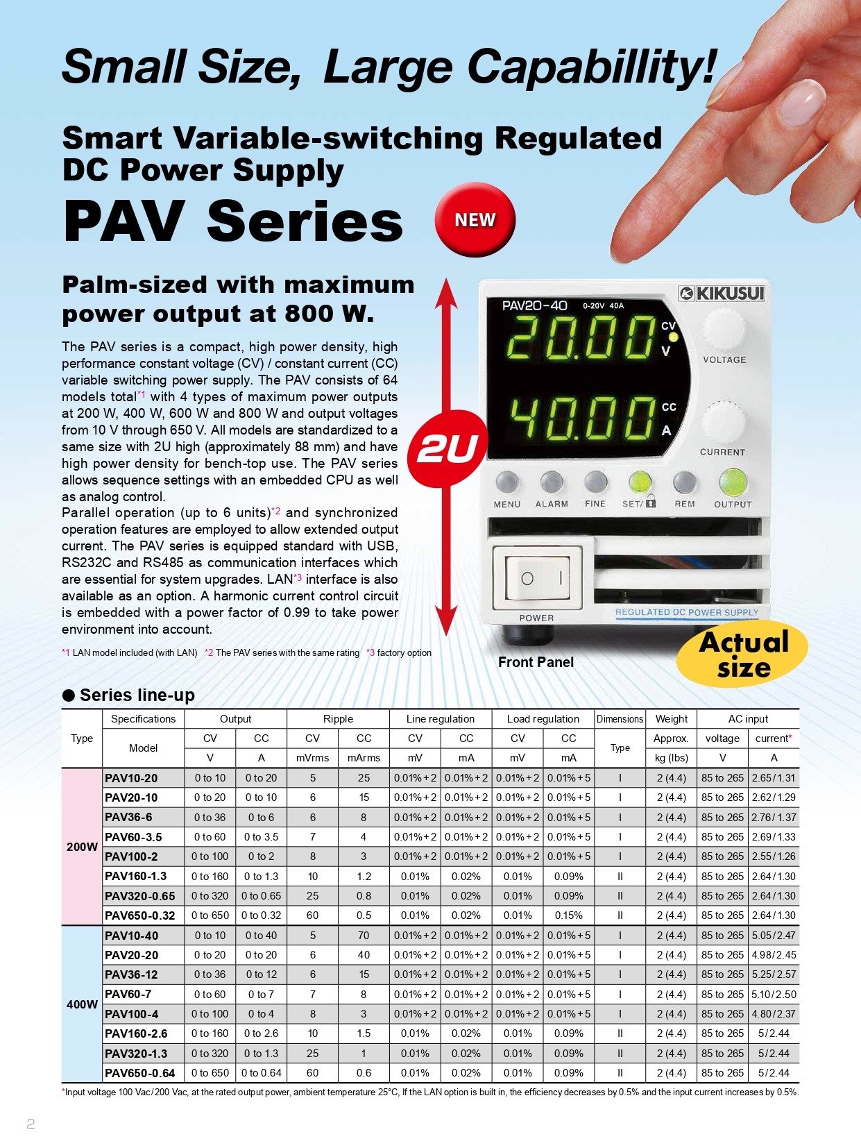 | PAV10-20 | 0 〜 10V / 0 〜 20A / 200W |
