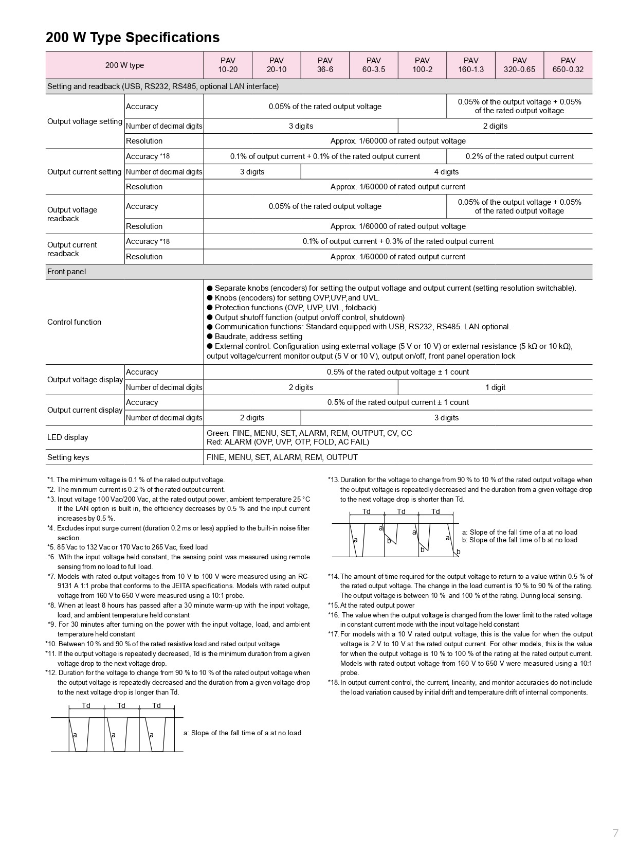 | PAV20-10 | 0 〜 20V / 0 〜 10A / 200W |