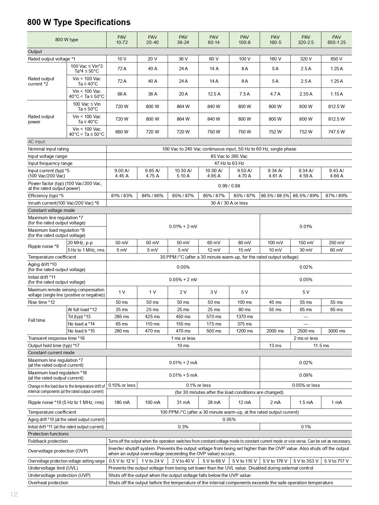| PAV10-72 | 0 〜 10V / 0 〜 72A / 720W |