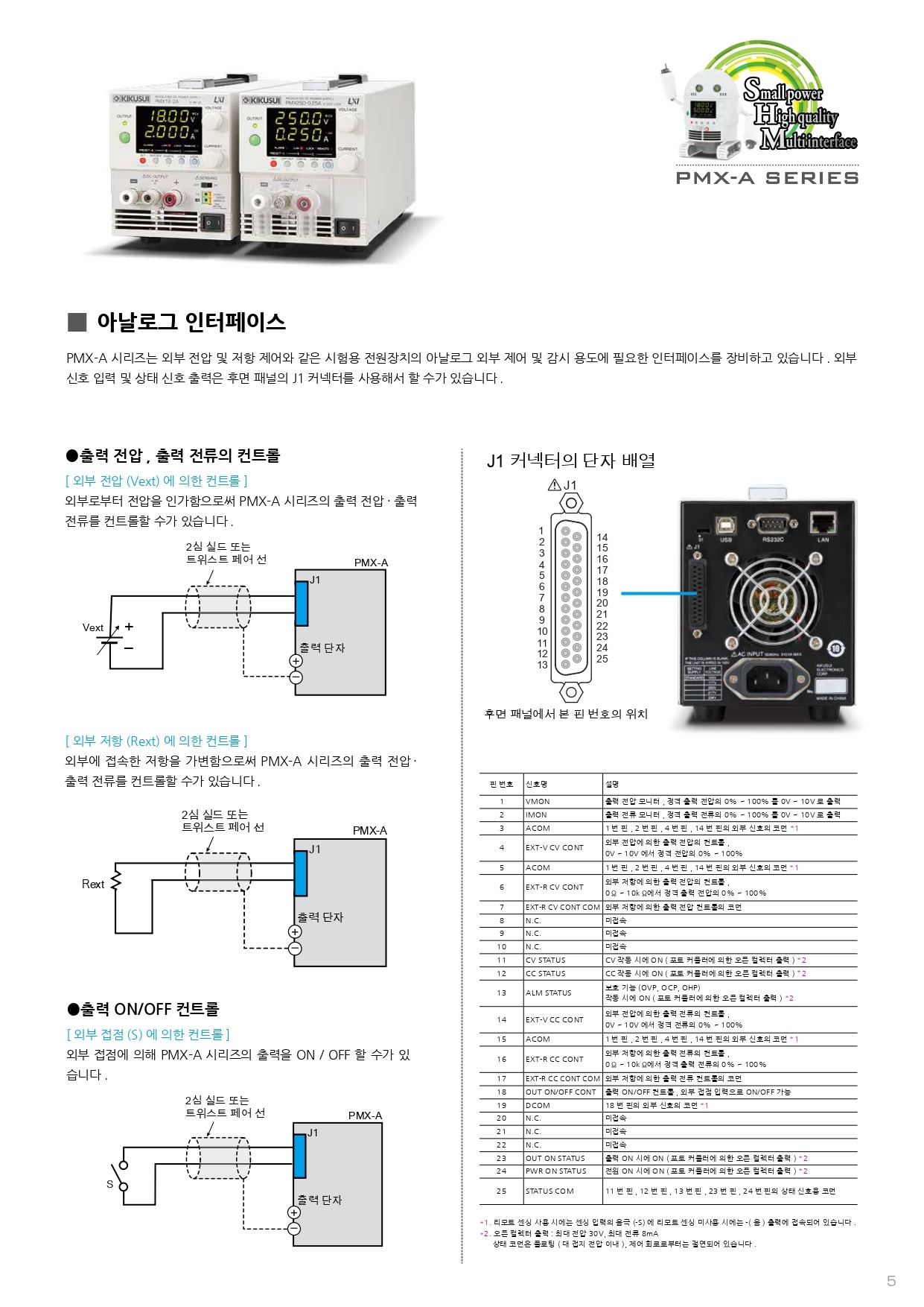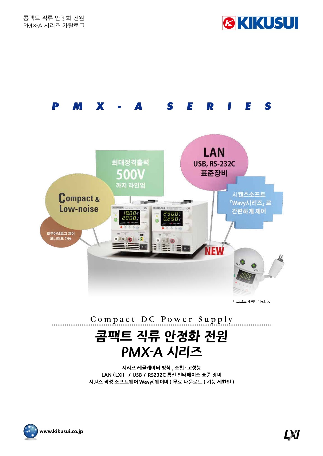 | PMX500-0.1A | 0 〜 500V/0 〜 0.1A LAN/USB/RS232C 인터페이스를 표준 장비(LAN은 LXI 대응) |