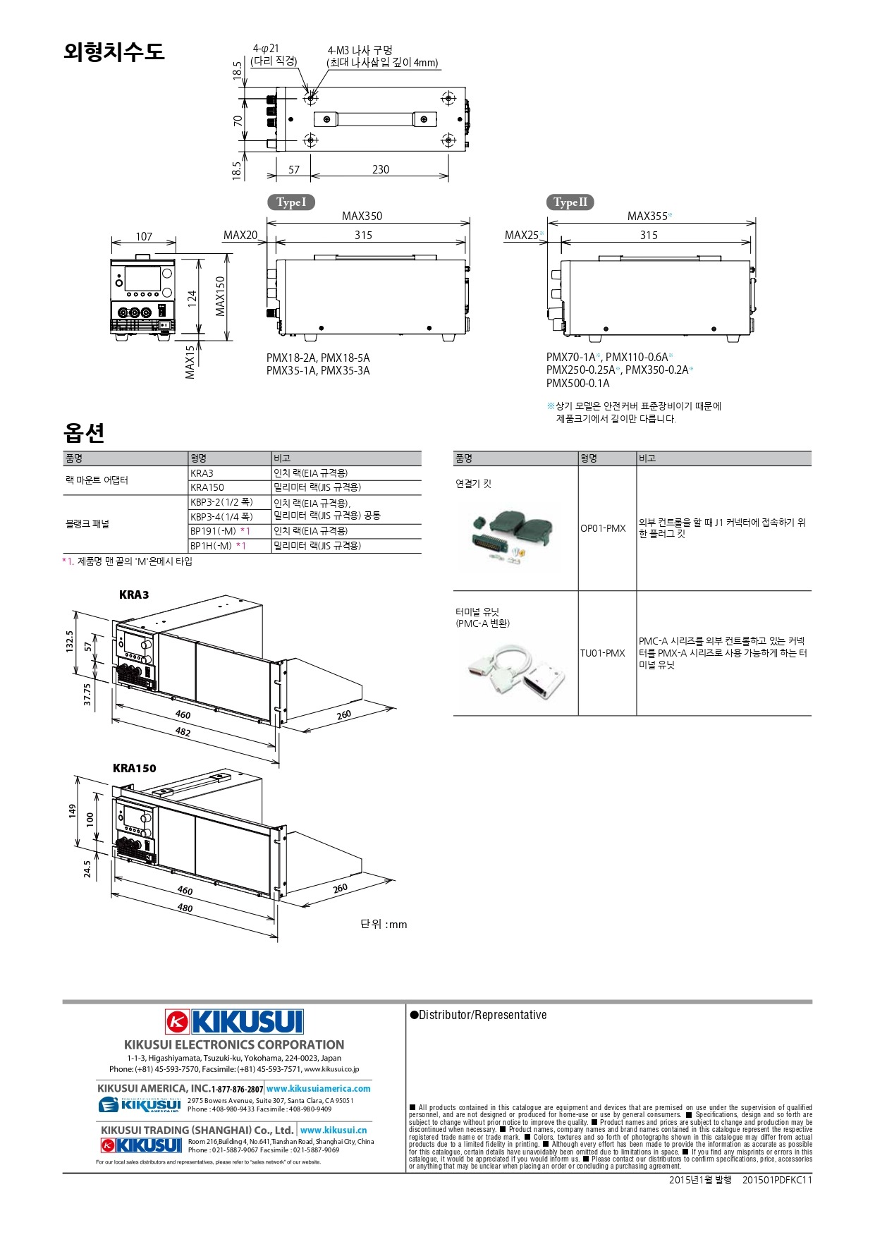 | PMX350-0.2A | 0 〜 350V/0 〜 0.2A LAN/USB/RS232C 인터페이스를 표준 장비(LAN은 LXI 대응) |