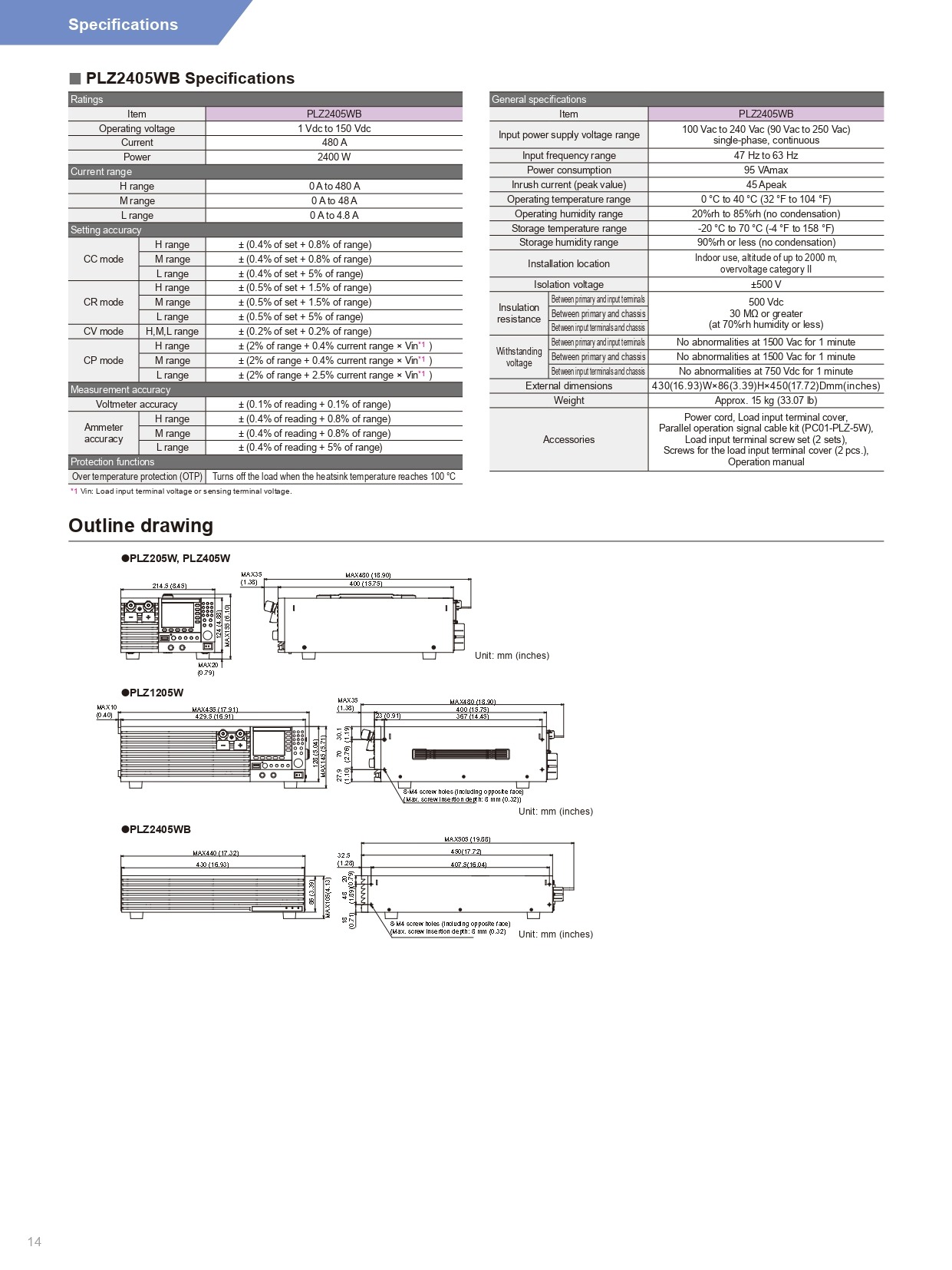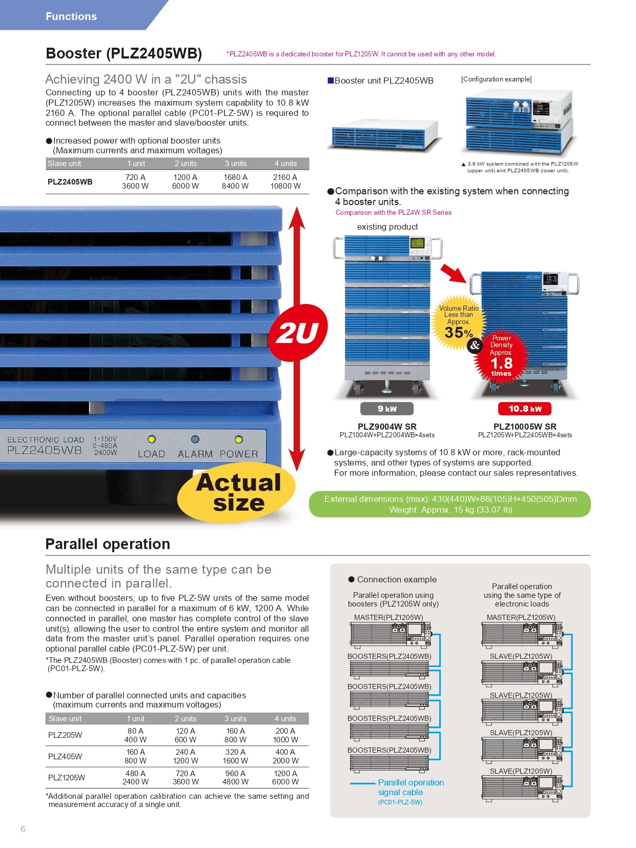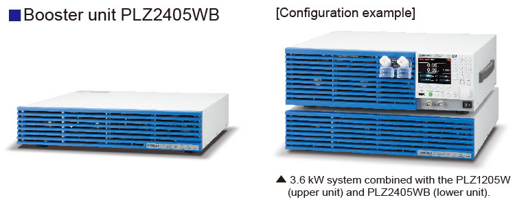 | PLZ2405WB | PLZ1205W용 부스터 유닛. 최대 2400W, 1~150V, 480A. 1대의 PLZ1205W를 부스터기로 하여 PLZ2405WB를 최대 4대까지 병렬 접속 가능합니다. (최대 10.8kW, 2160A) ※주: PLZ1205W 전용입니다. 다른 모델과 접속하여 사용할 수 없습니다. |