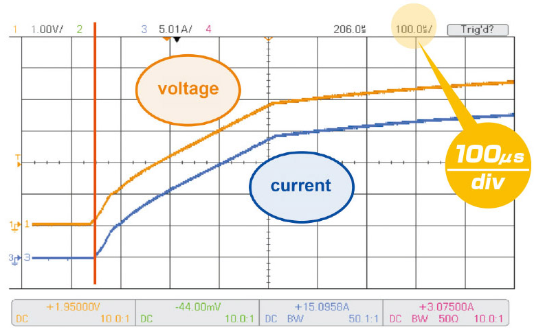 슬루 레이트 60A/μs 정격전류까지의 전류 상승시간 4μs를 실현 전원 평가에 대한 중요도가 커진 고속 과도 응답 시험에 대응