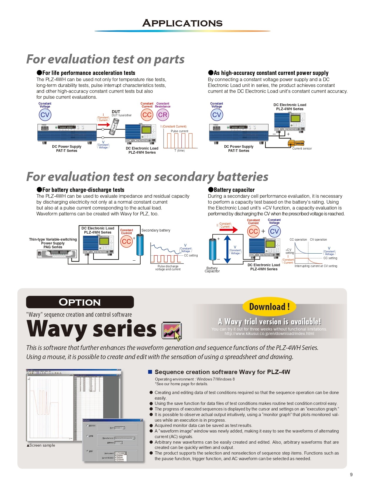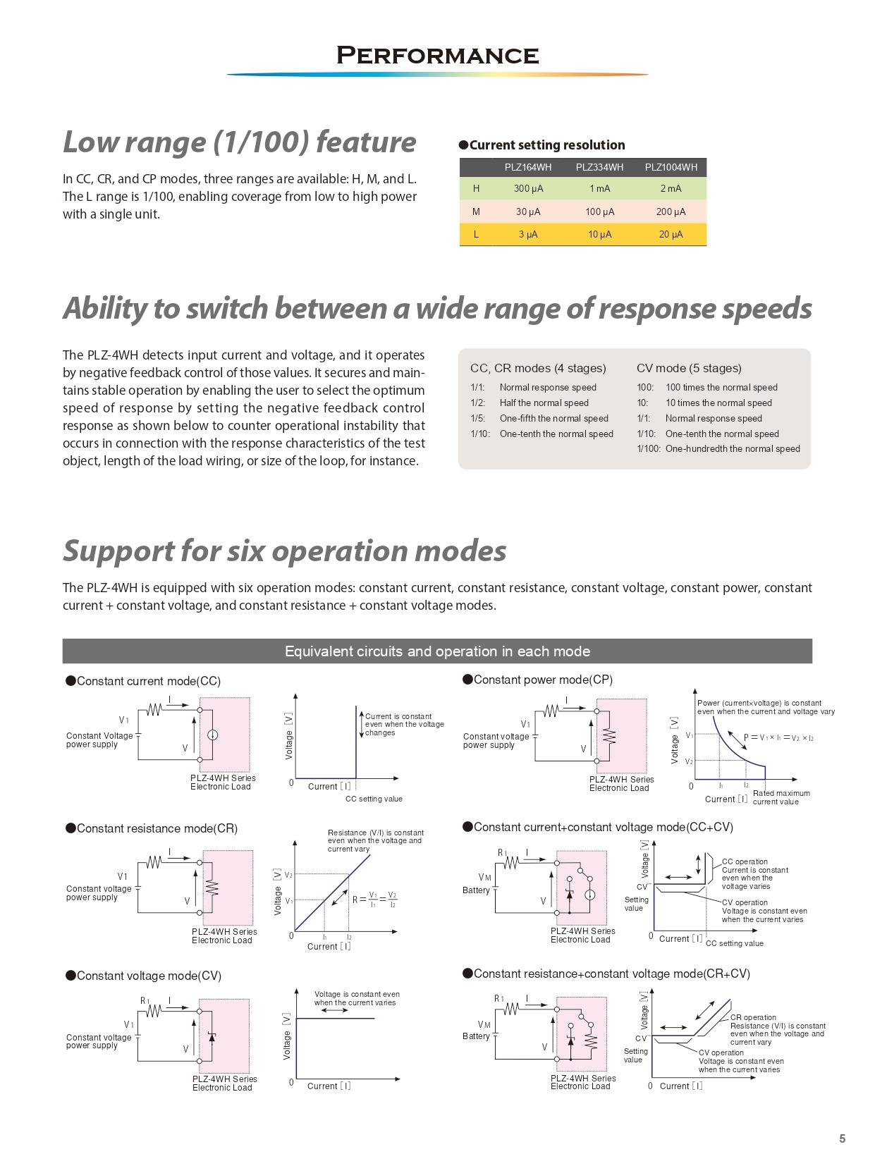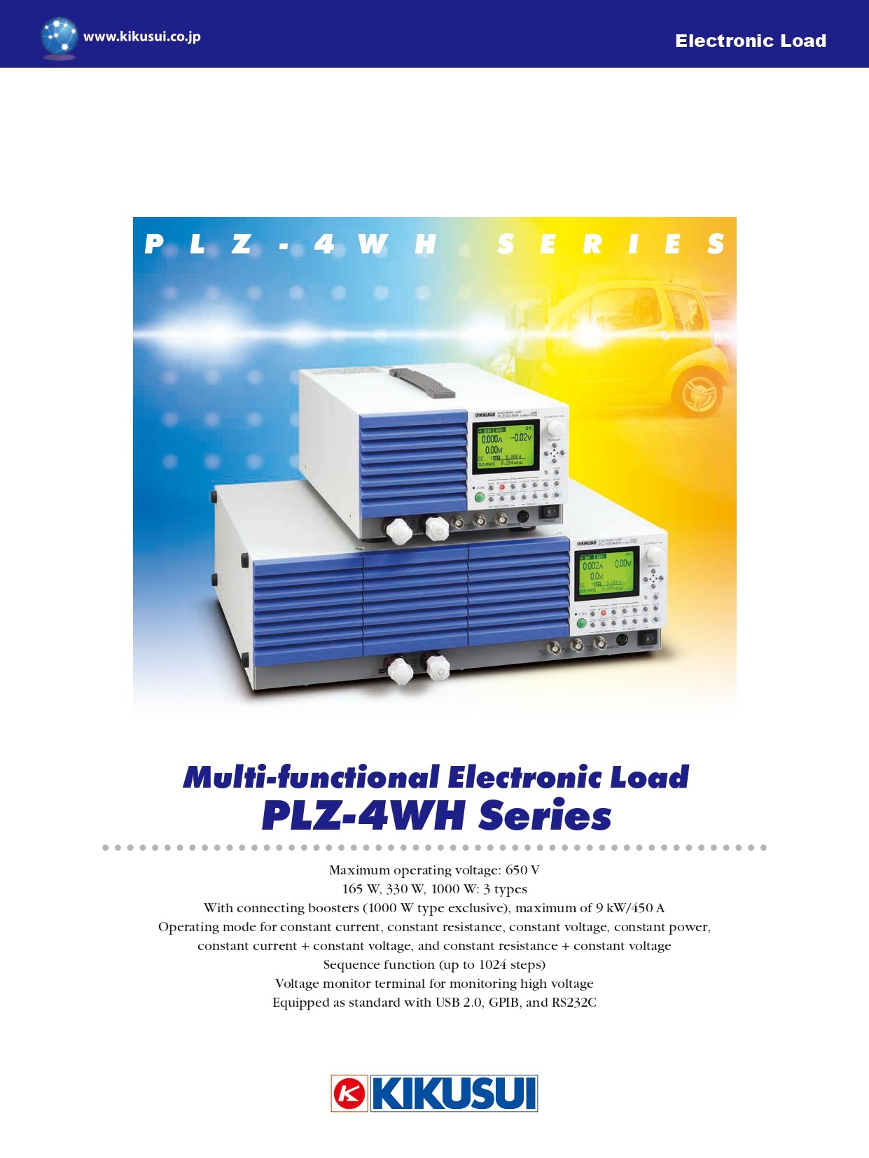 PLZ-4WH시리즈는 높은 신뢰성과 안전성을 기본으로 설계된 다기능 전자 부하장치입니다. 최대동작 전압 650V, 안정성과 고속동작을 가능하게 하는 전류 제어회로를 장비하여 실부하 시뮬레이션을 실현합니다. CPU 제어에 의한 조작성의 향상과 다기능화. 전류 설정은 고정밀도화가 이루어져, 충분한 설정 분해능을 보유하고 있습니다.