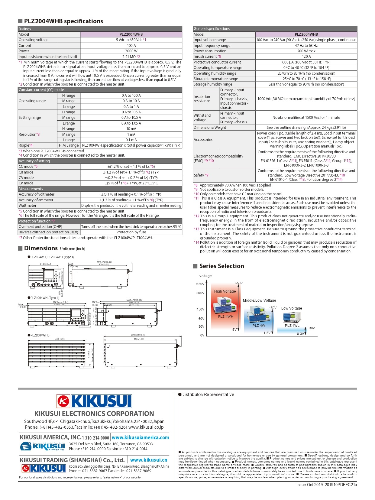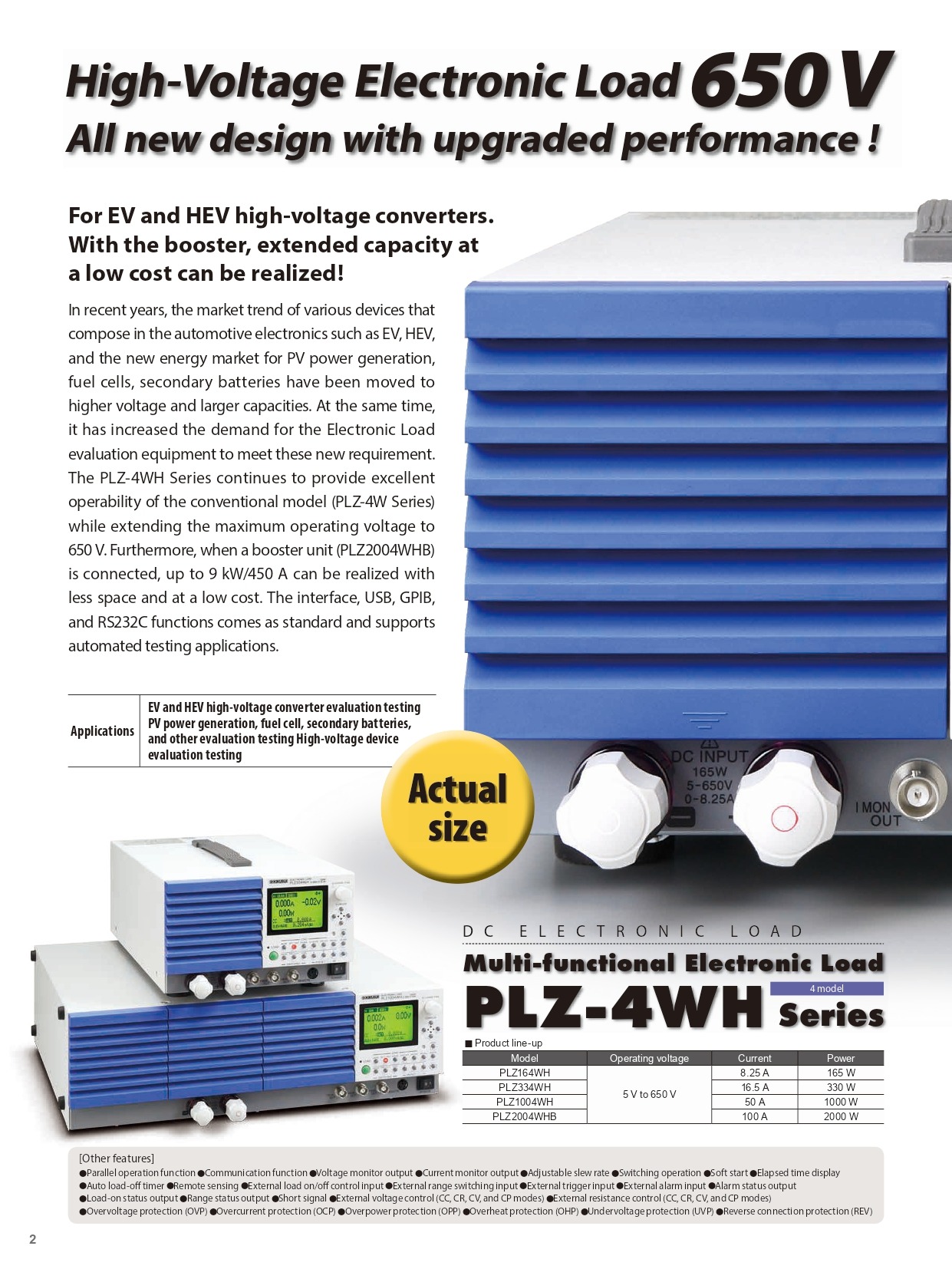 PLZ-4WH SR/LP 시리즈는 PLZ1004WH와 부스터 (PLZ2004WHB)를 전용 랙 부품으로 조립 한 대용량 모델입니다. 동작 전압 범위 5~650V 최대 13kW, 650A까지 지원합니다.