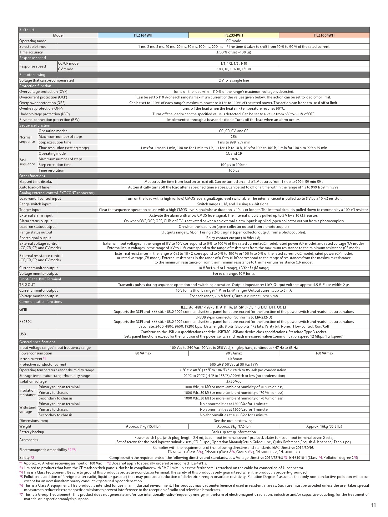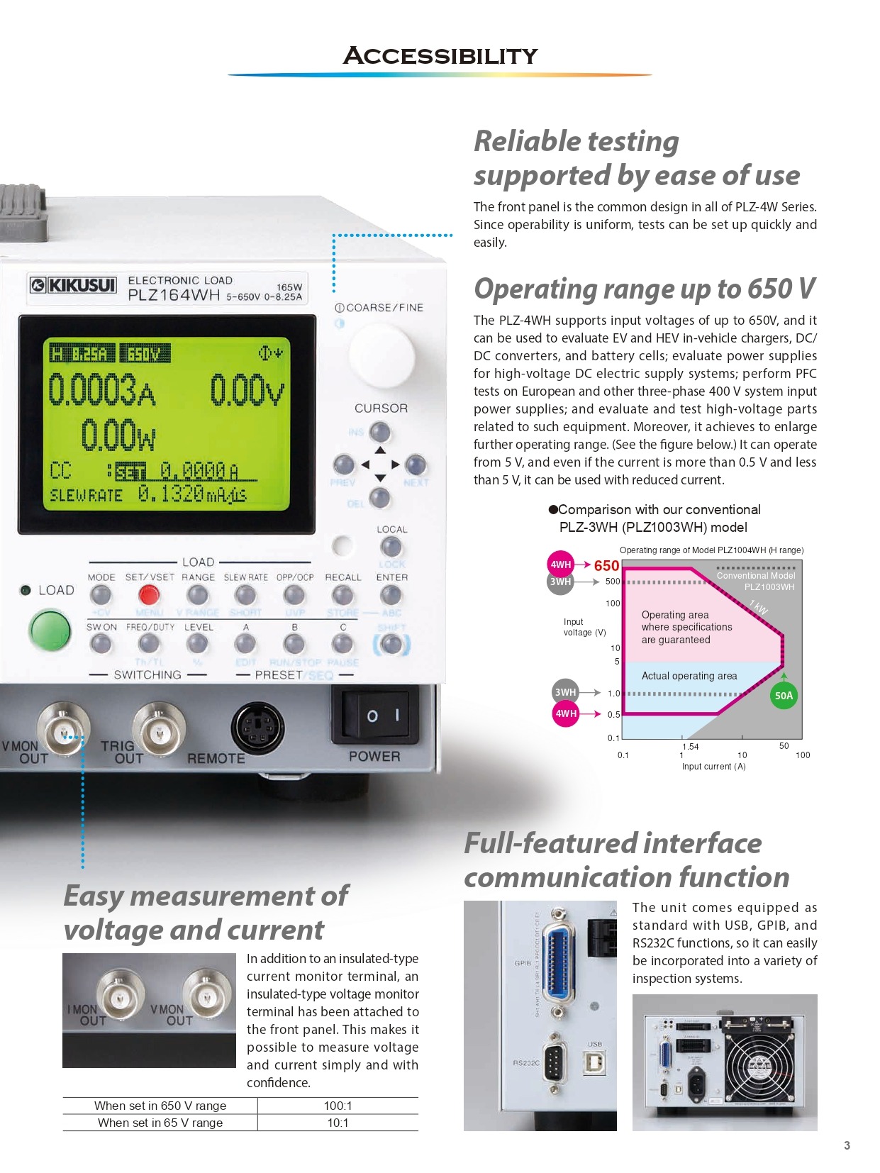 | PLZ1004WH | 5 〜 650V, 50A, 1000W, 각종 보호 회로 장착、RS-232C, GPIB, USB 인터페이스 표준 장비 |