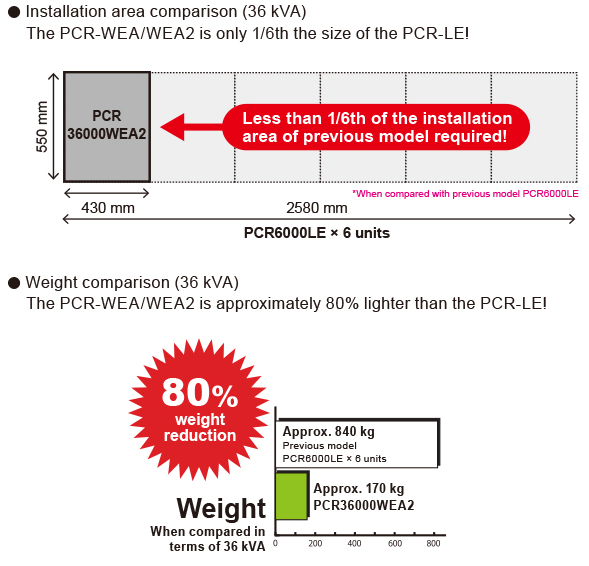 전원 설치 장소에 고민이 있다면, 공간 요소를 크게 향상시킨 PCR-WEA / WEA2가 공간 절약 화에 크게 기여할 수 있습니다. 대용량 모델이 될 정도로 공간 효과가 커집니다.