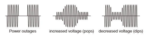 PCR-WEA / WEA2의 출력을 정전, 전압 강하 (강하), 전압 상승 (팝)시켜 전원 라인 이상 시뮬레이션 수 있습니다.스위칭 전원이나 전자 기기 등의 시험에 사용할 수 있습니다.