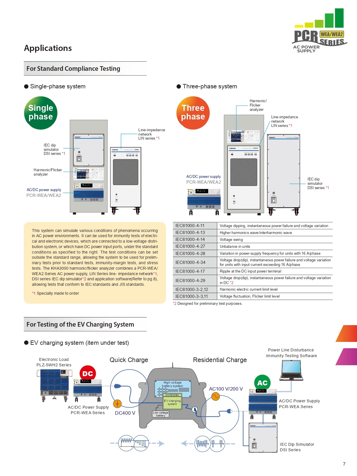 | PCR6000WEA2 | 단상 6 kVA / 단상 3선 4 kVA / 3상 6 kVA, AC0 ~ 320 Vrms, 1 Hz ~ 5 kHz, DC0 ~ ±452V, PWM 유형, 전력 회수 기능 탑재 |
