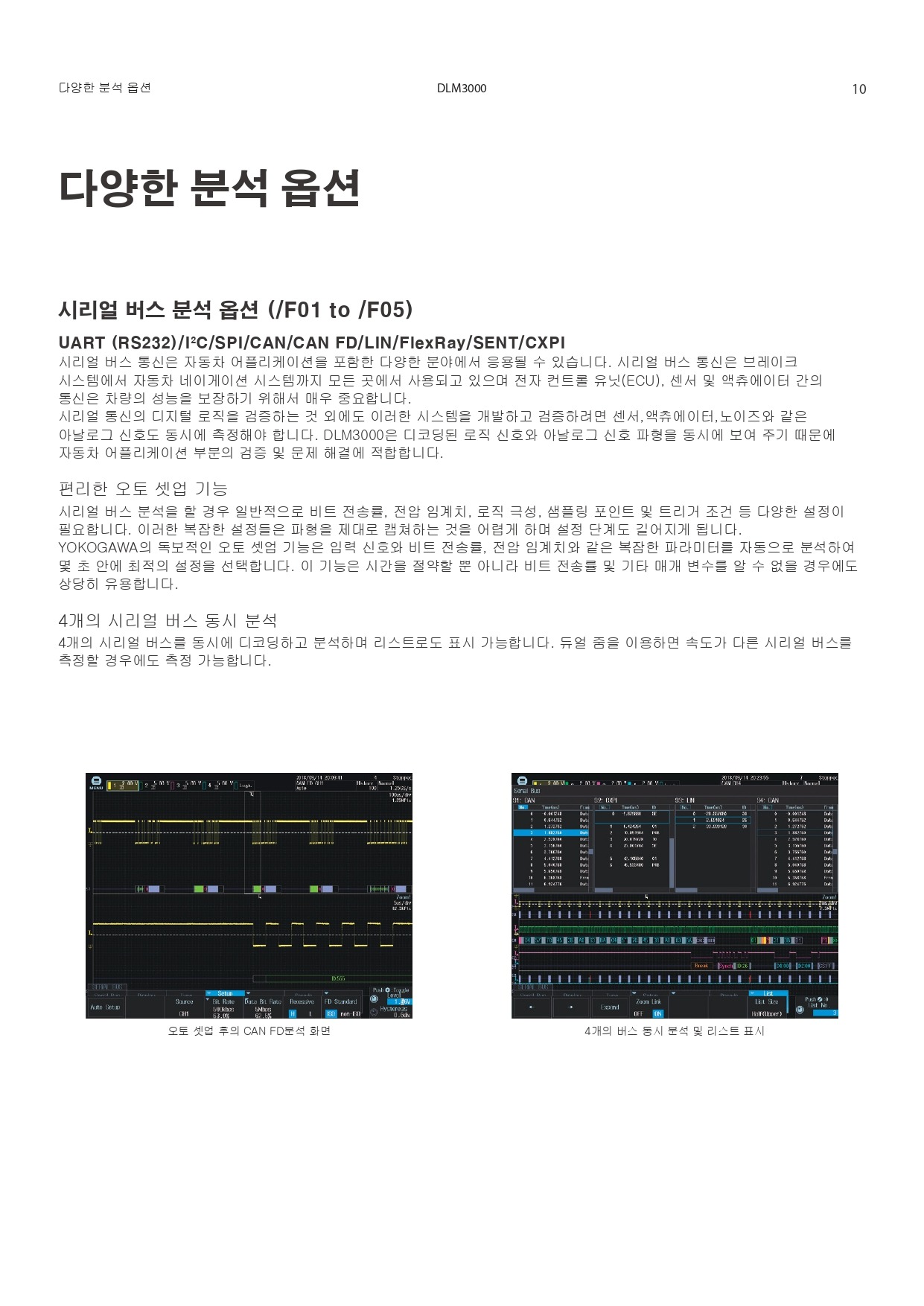 System Integration과 복잡한 컨트롤을 위해 최대 4개의 시리얼 버스를 구성할 수 있으며, 동시에 분석이 가능합니다.