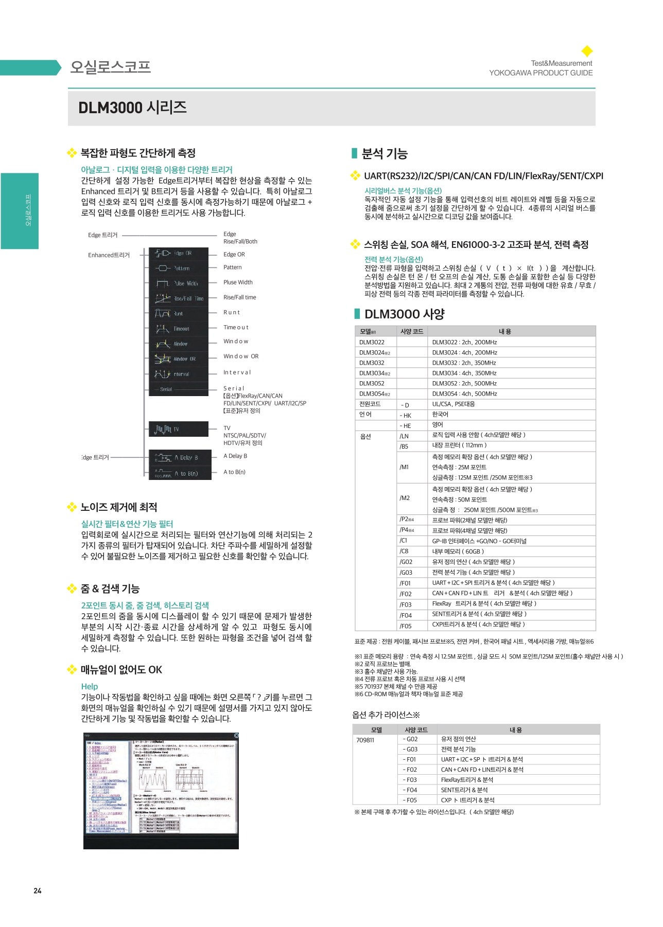| DLM3024 | 200MHz, 4채널 아날로그 / 3채널 아날로그 + 8bit 로직 |