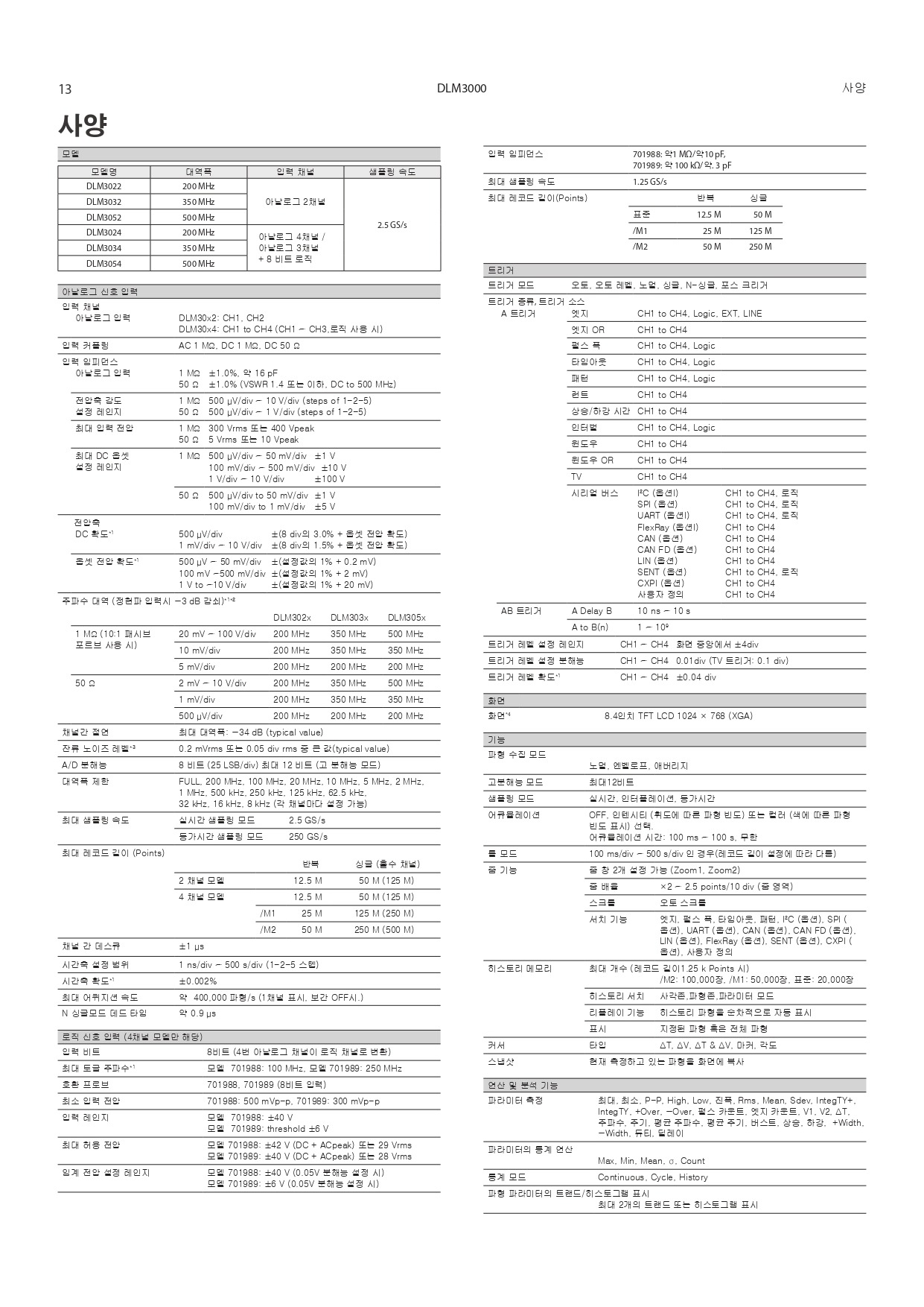 | DLM3054 | 500MHz, 4채널 아날로그 / 3채널 아날로그 + 8bit 로직 |