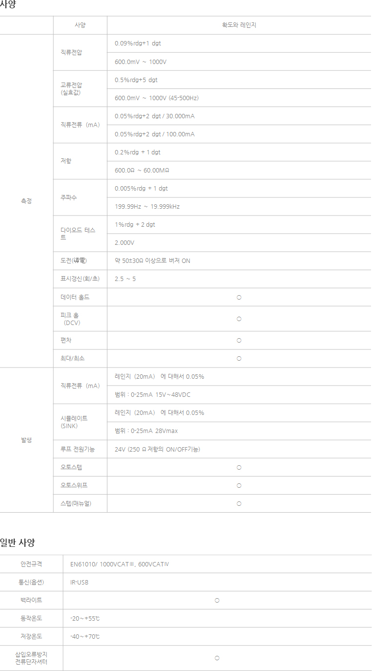 - 600V CAT. Ⅳ, 1000V CAT. Ⅲ의 안전규격