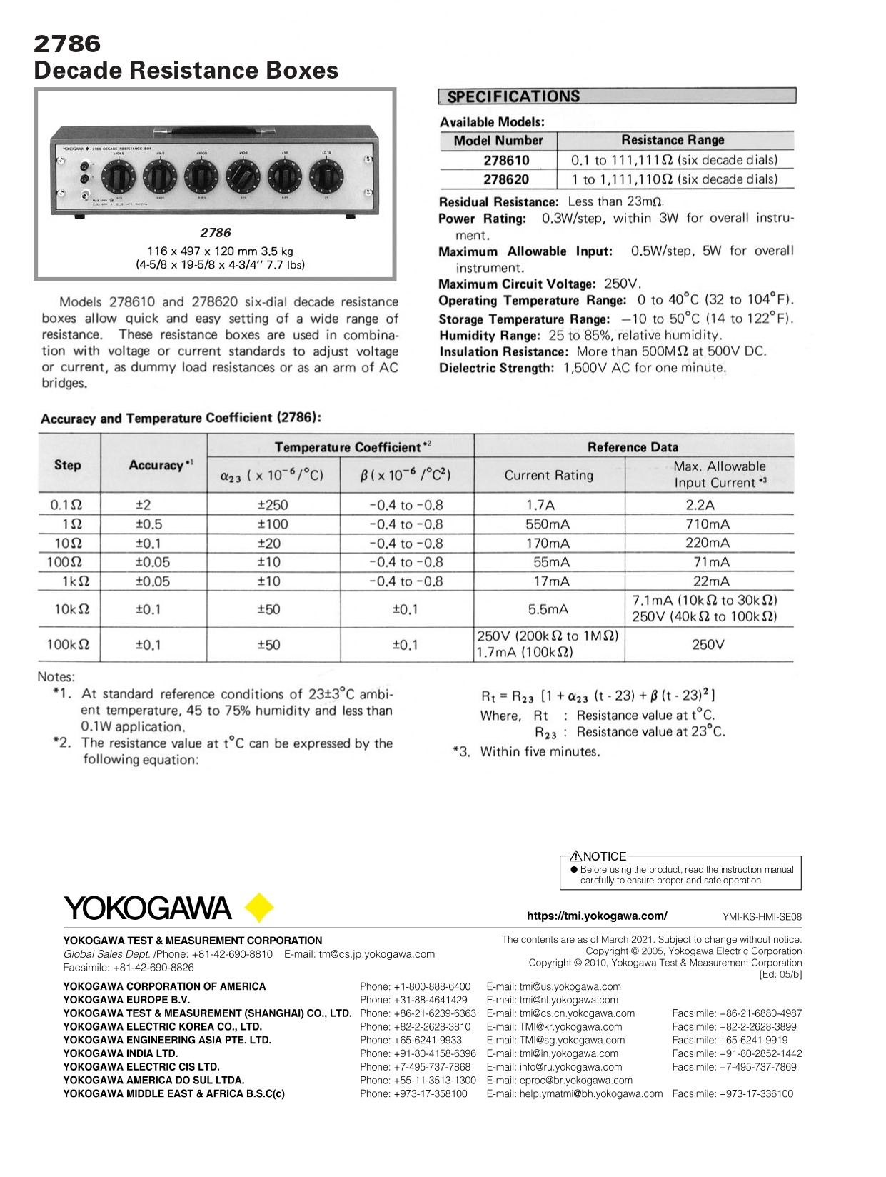 | Temperature Coefficient of Resistance Elements | ±0.5 x 10-5 /°C at ambient temperature of 5 to 35°C (41 to 95°F), ±2 x 10-5 /°C at ambient temperature of 20 to 35°C (68 to 95°F) |