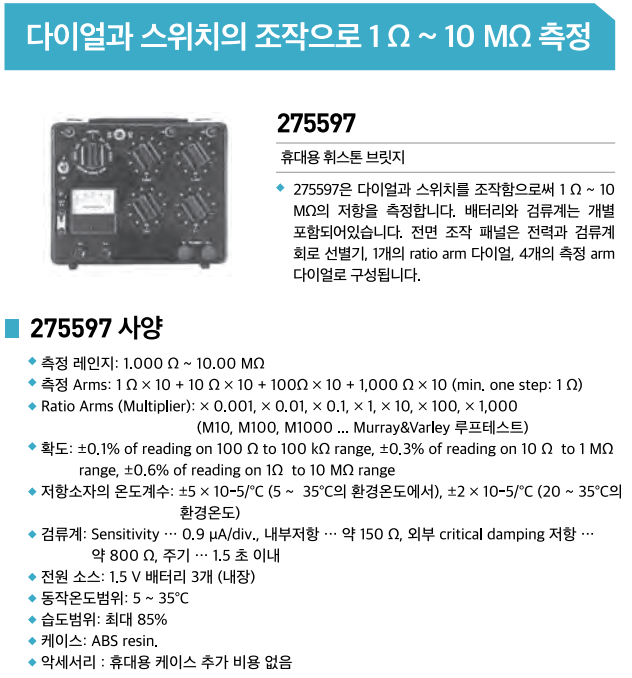 | Ratio Arms | x 0.001 x 0.01, x 0.01, x 0.1, x 1, x 10, 100, x 1000 (M10, M100, M1000 Murray & Varley loop testing) |