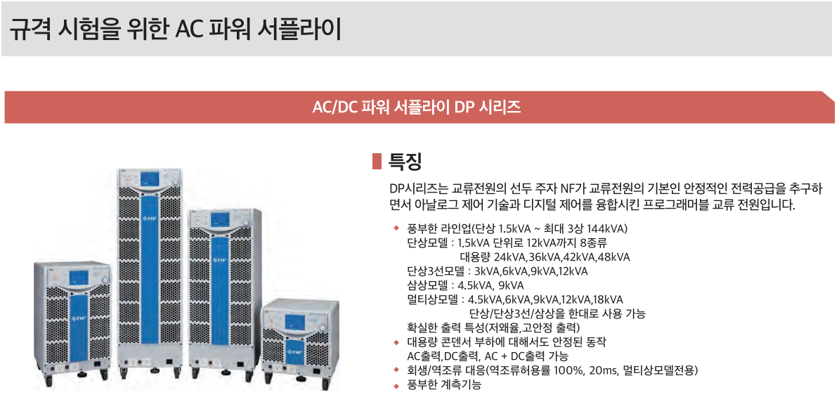 최대 출력전압은 단상 310V, 삼상 480V의 110% 까지 시험 가능합니다.