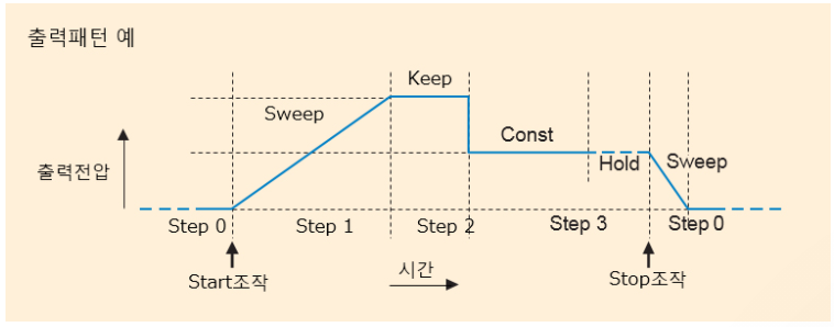 주파수, 전압, 시간등의 파라메터를 프로그램화해서 순차적으로 출력할 수 있습니다.