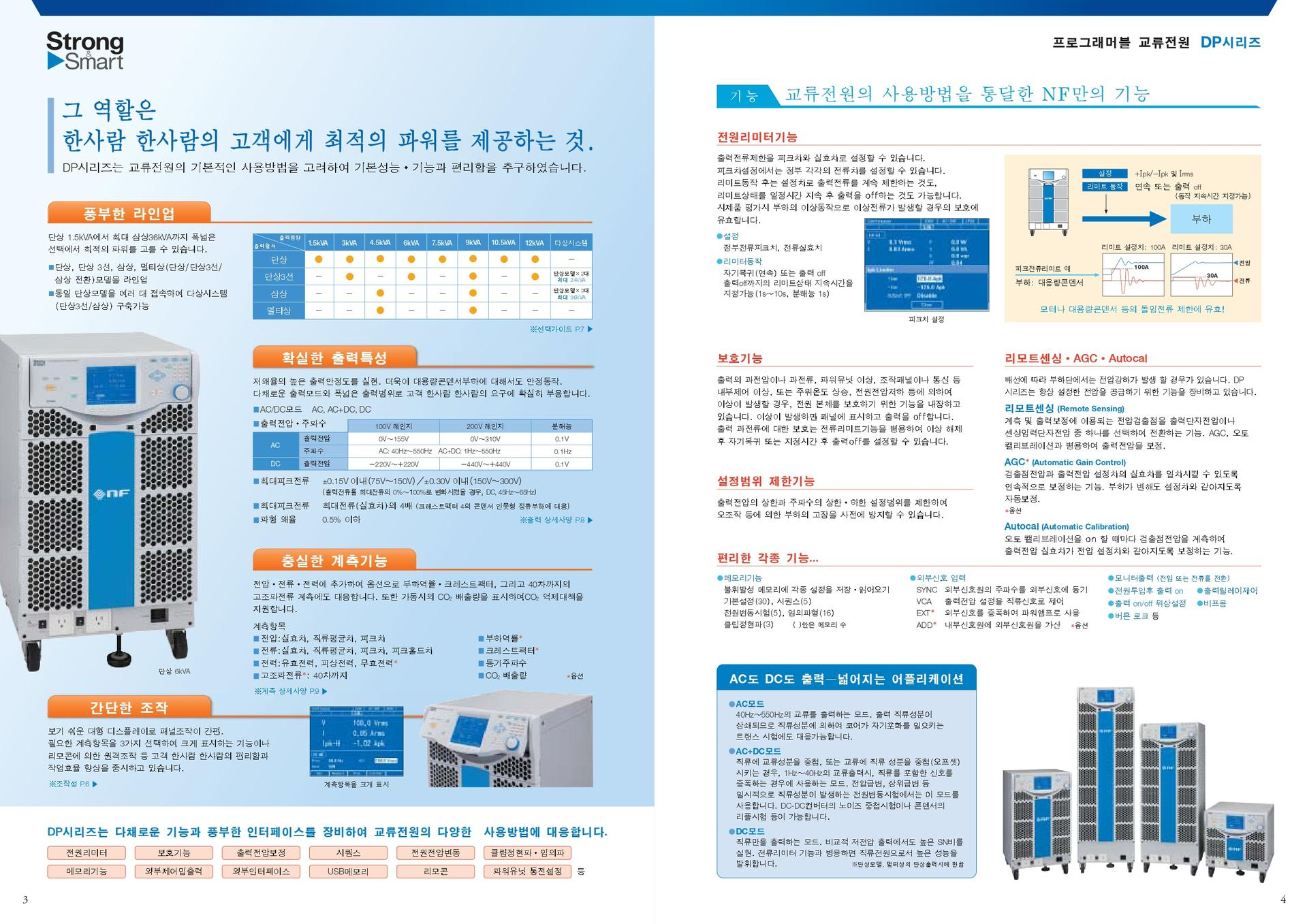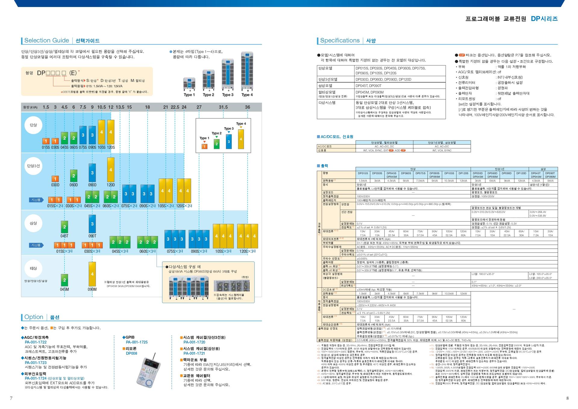 직류출력 용량은 일반적인 AC/DC 파워서플라이의 경우 50~70% 정도이지만 DP시리즈는 AC/DC 동일합니다.