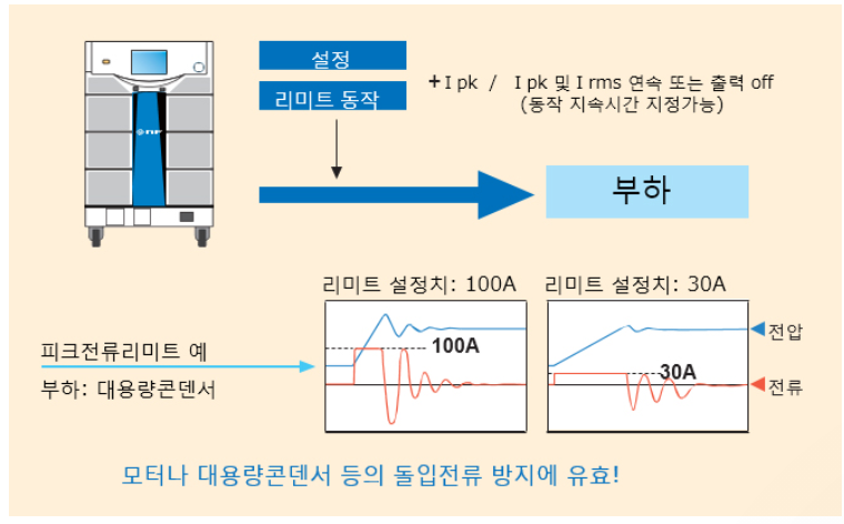 출력전류를 피크치와 실효치 설정으로 제한할 수 있습니다.