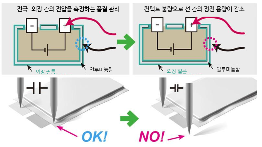 절연 저항 시험 또는 내압 시험에서는 특성에 영향을 받지 않는 알루미늄 라미네이트의 균열을 검출하거나 최악의 경우 전해액을 분해합니다.