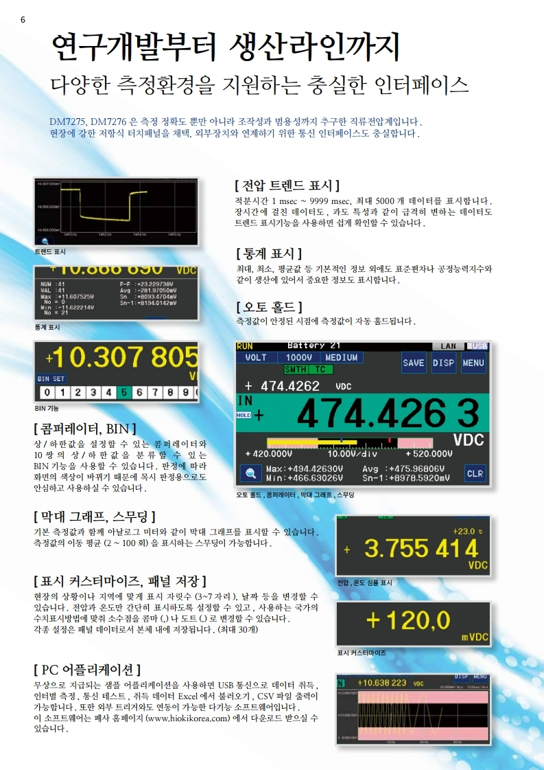 노이즈에 강한 직류 전압 측정과 고속 샘플링 모드를 가진 DM시리즈만의 응용 소프트웨어입니다.