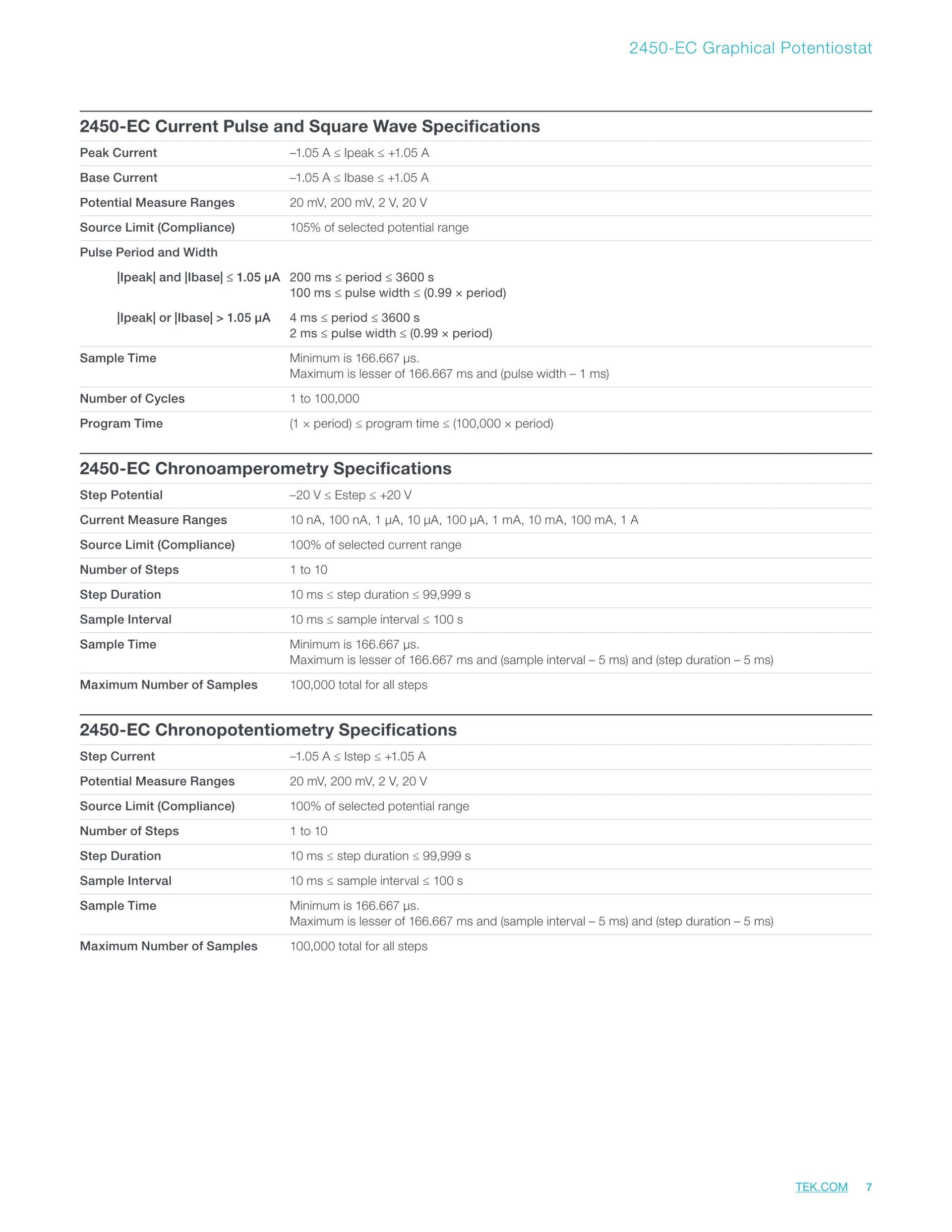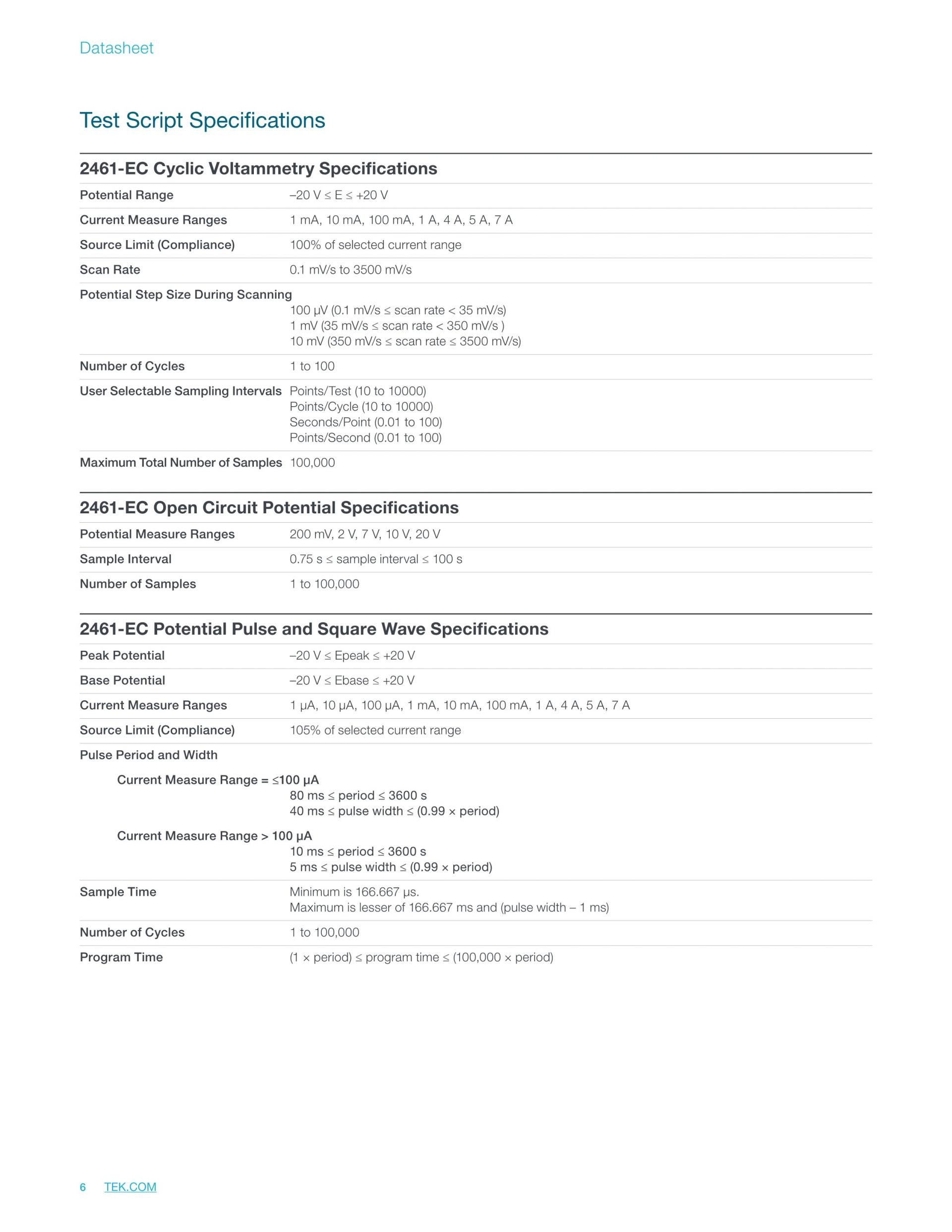 유연성이 뛰어나며 가격이 저렴한 2450-EC, 2460-EC 및 2461-EC 전위 가변기는 기본적인 전기 화학 실험실 연구의 연구/개발, 차세대 소재/전해질 특성화, 새로운 에너지 스토리지 장치, 그리고 속도는 더 빠르고 크기는 더 작은 센서 등에 사용하기에 적합합니다. 이 전위 가변기에는 순환, 구형파 또는 자발적 전압주사법(Galvanic Voltammetry), 크로노암페로메트리(chronoamperomety) 및 크로노퍼텐쇼메트리(chronopotentionmety) 등의 전기 화학 테스트에 필요한 모든 기능이 포함되어 있습니다.
