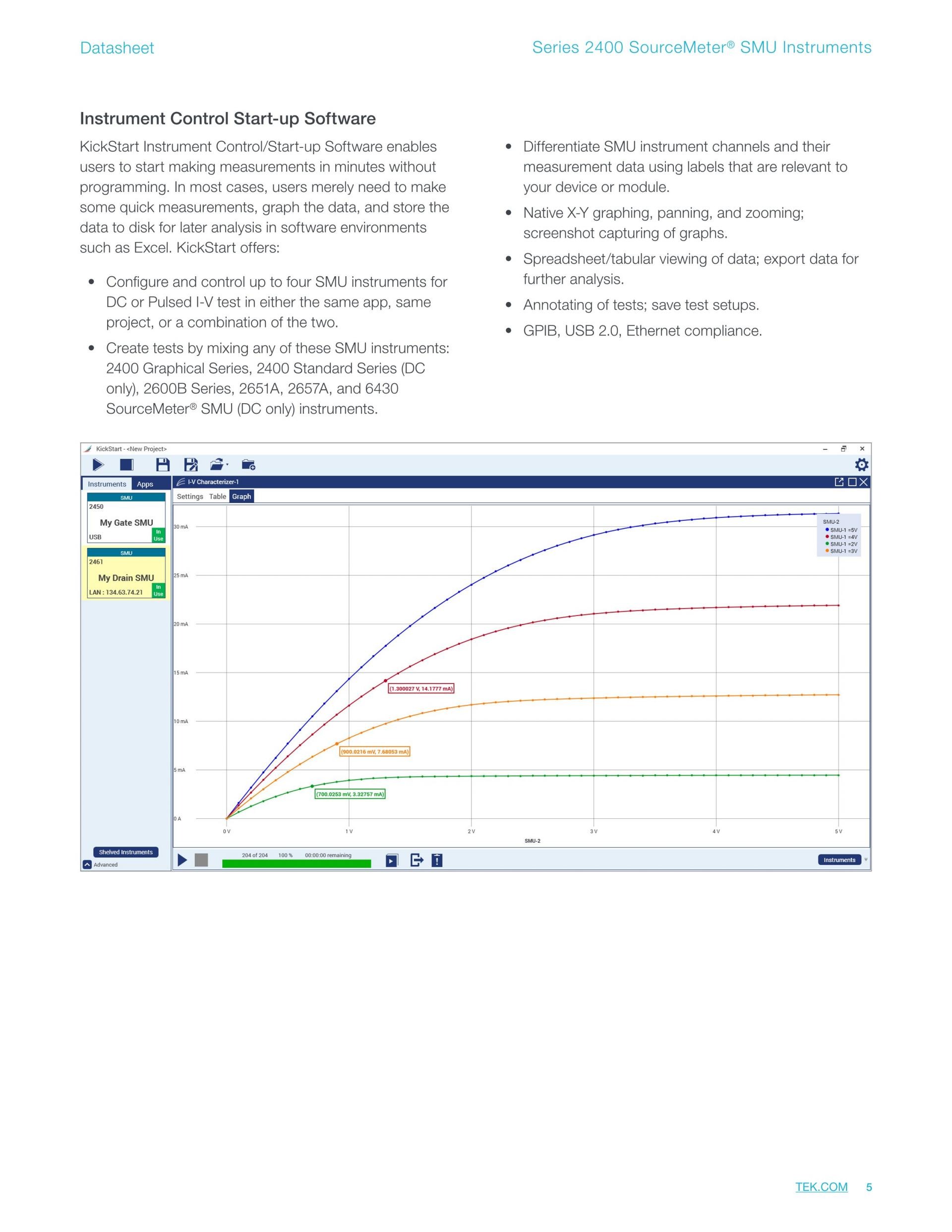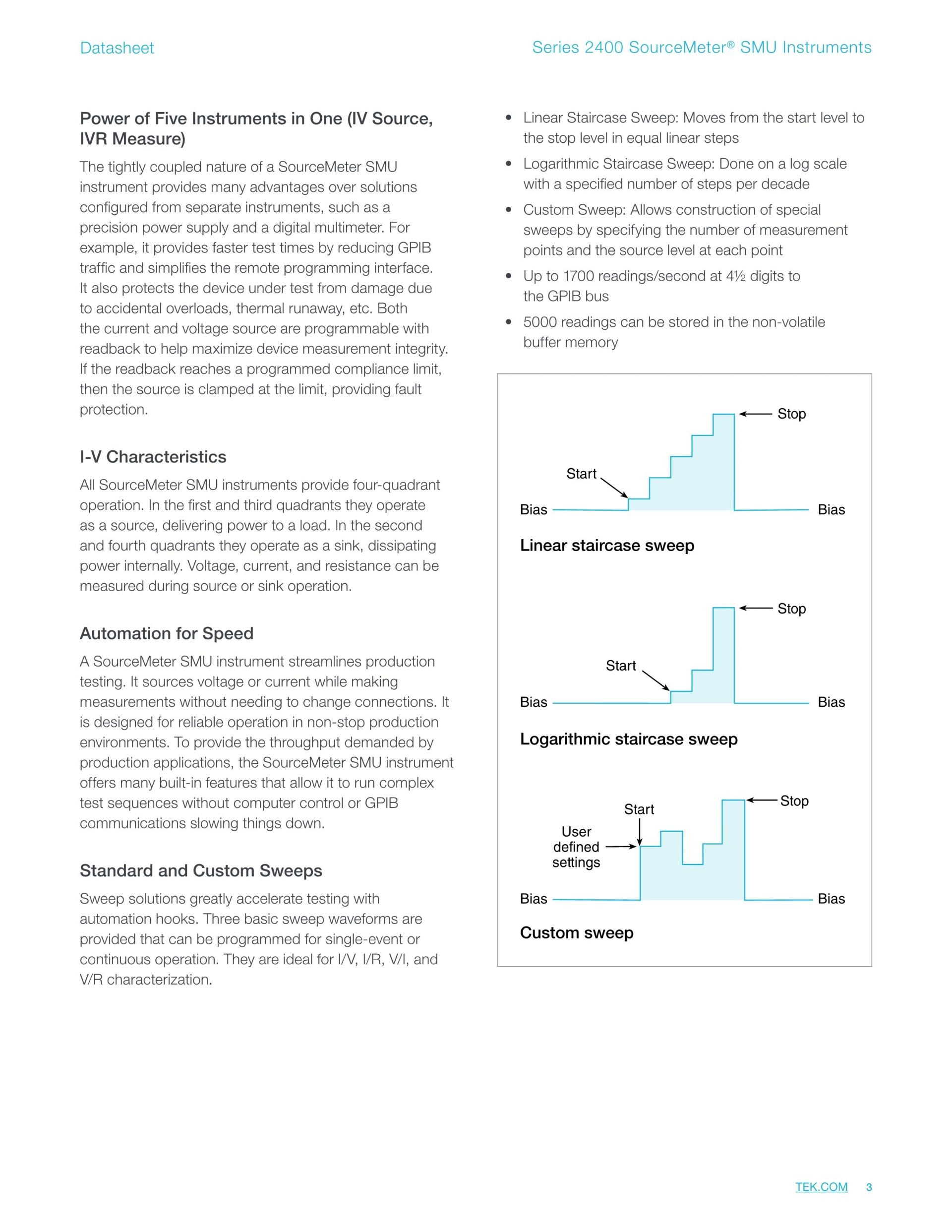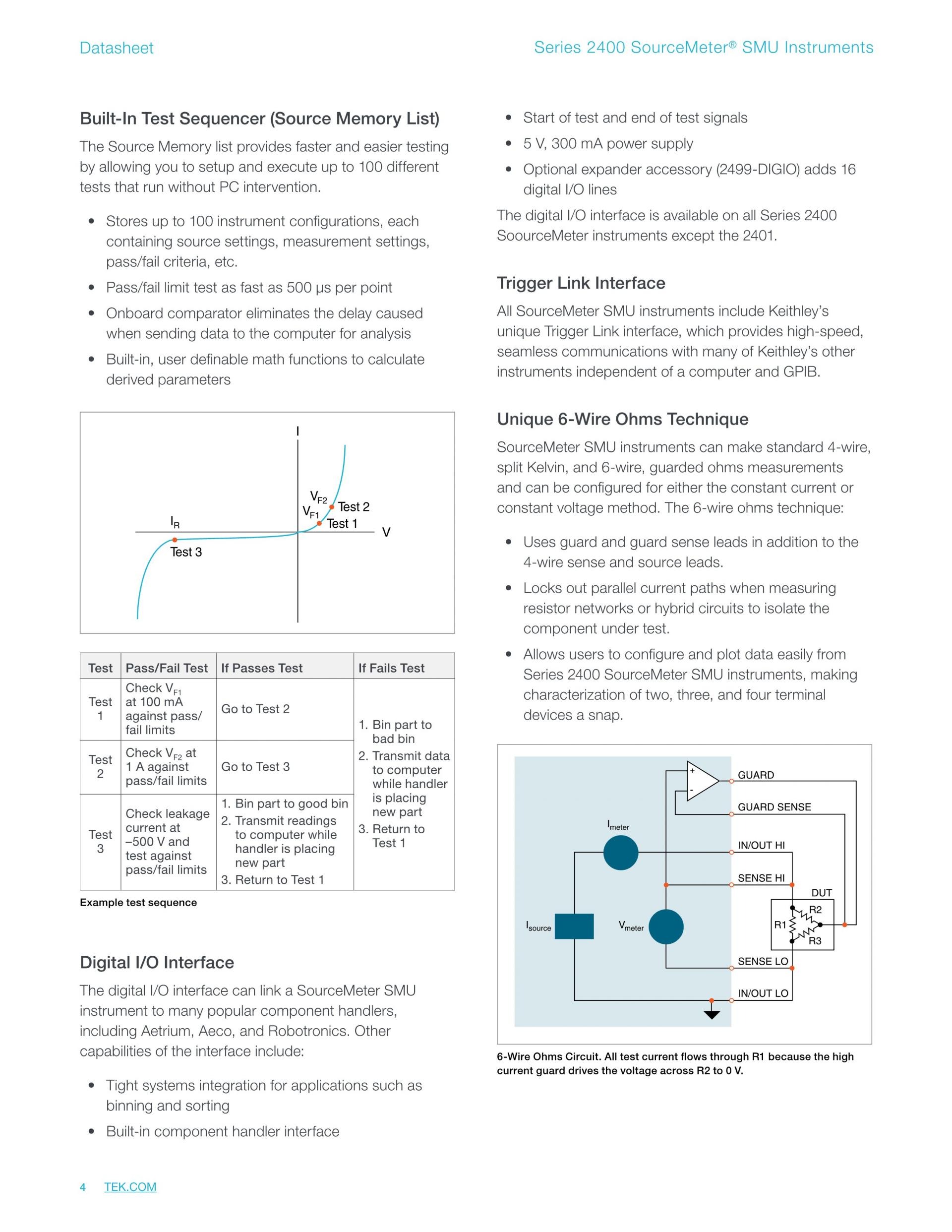 키슬리의 표준 시리즈 2400 소스 측정 장치(SMU) 장비는 4분할 정밀 전압 및 전류 소스/부하를 측정과 함께 제공합니다.