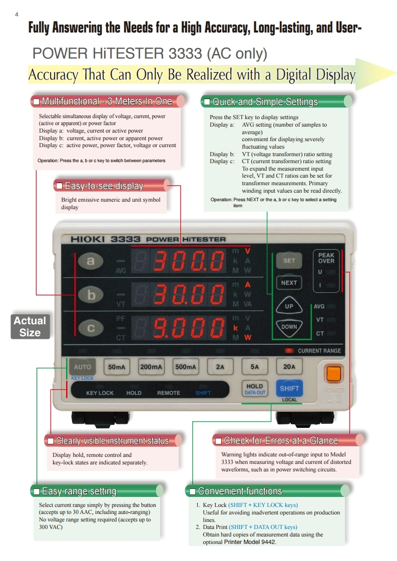 DC측정, 전류/전력적산측정에 대응한 단상 전력계