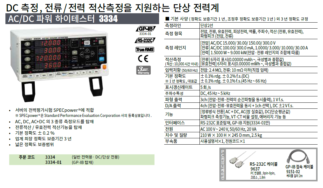 HIOKI 히오키 3334 – 굿맨시스템 AC/DC 파워 하이테스터