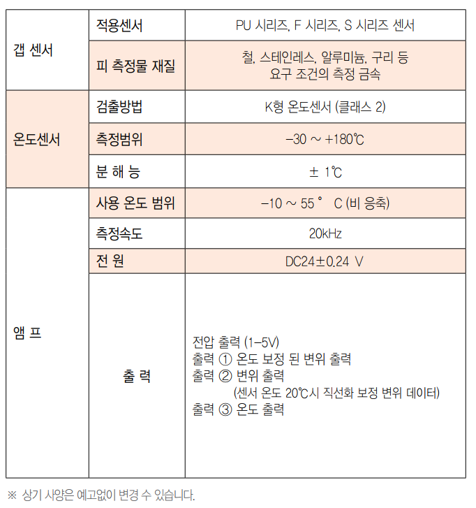 • 헤드 앰프의 교환으로 센서의 변경을 쉽게 가능