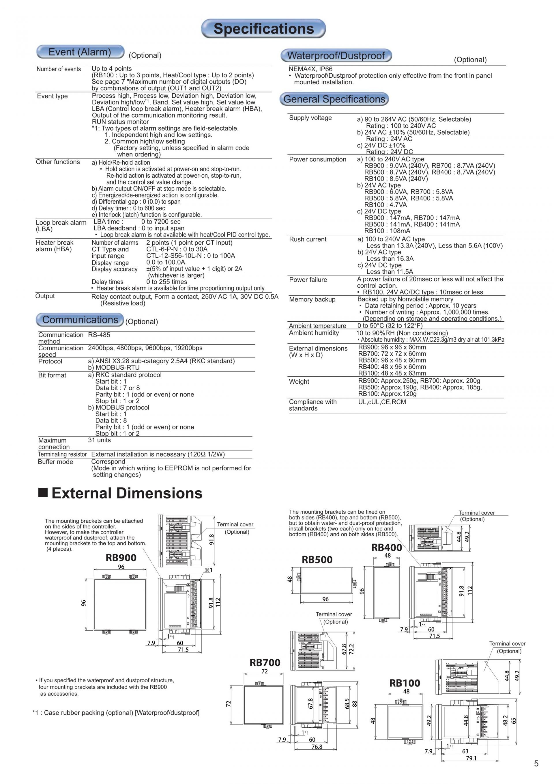 RB SERIES (RB100 / RB400 / RB500 / RB700 / RB900) DIGITAL controllers (Temperature controllers)