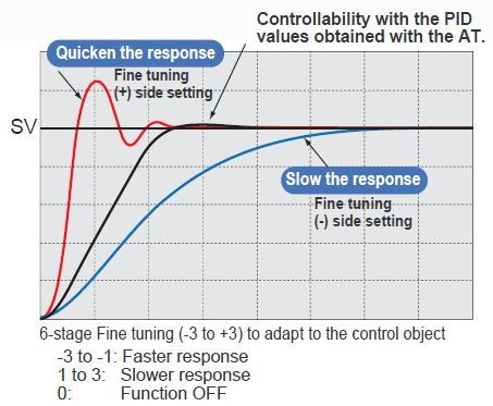 ![]() | Response speed can be easily changed against the controllability obtained by Autotuning. nYour desired response can be selected from 6 stages. |