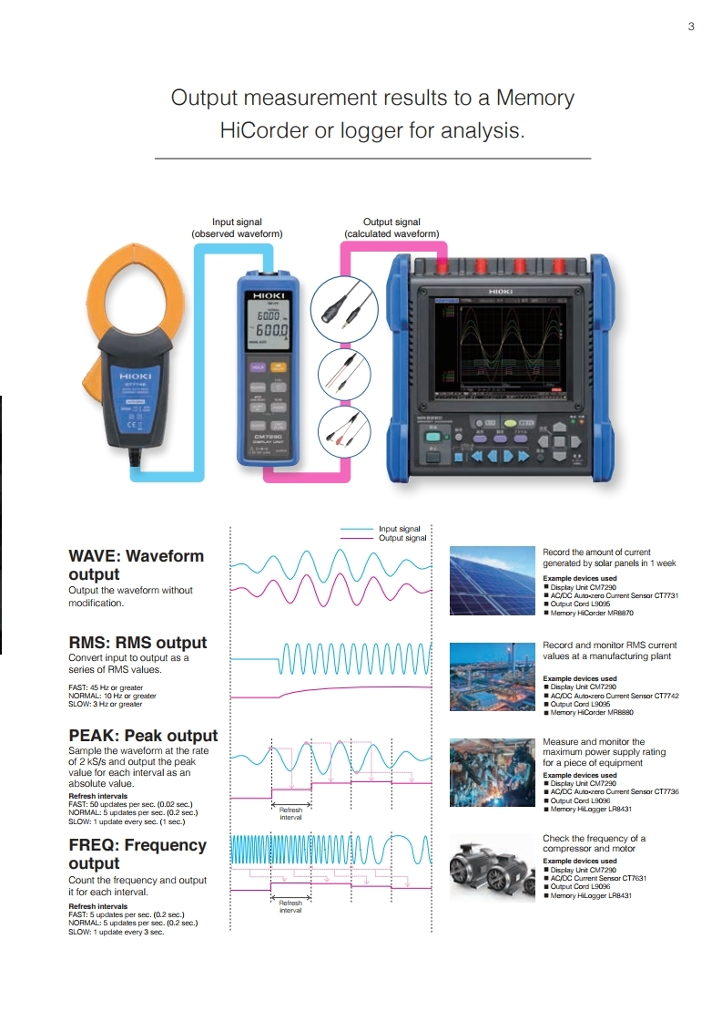 장기간 파형기록, 측정에 사용. 메모리 하이코더나 로거와 연계해 전류측정을 지원