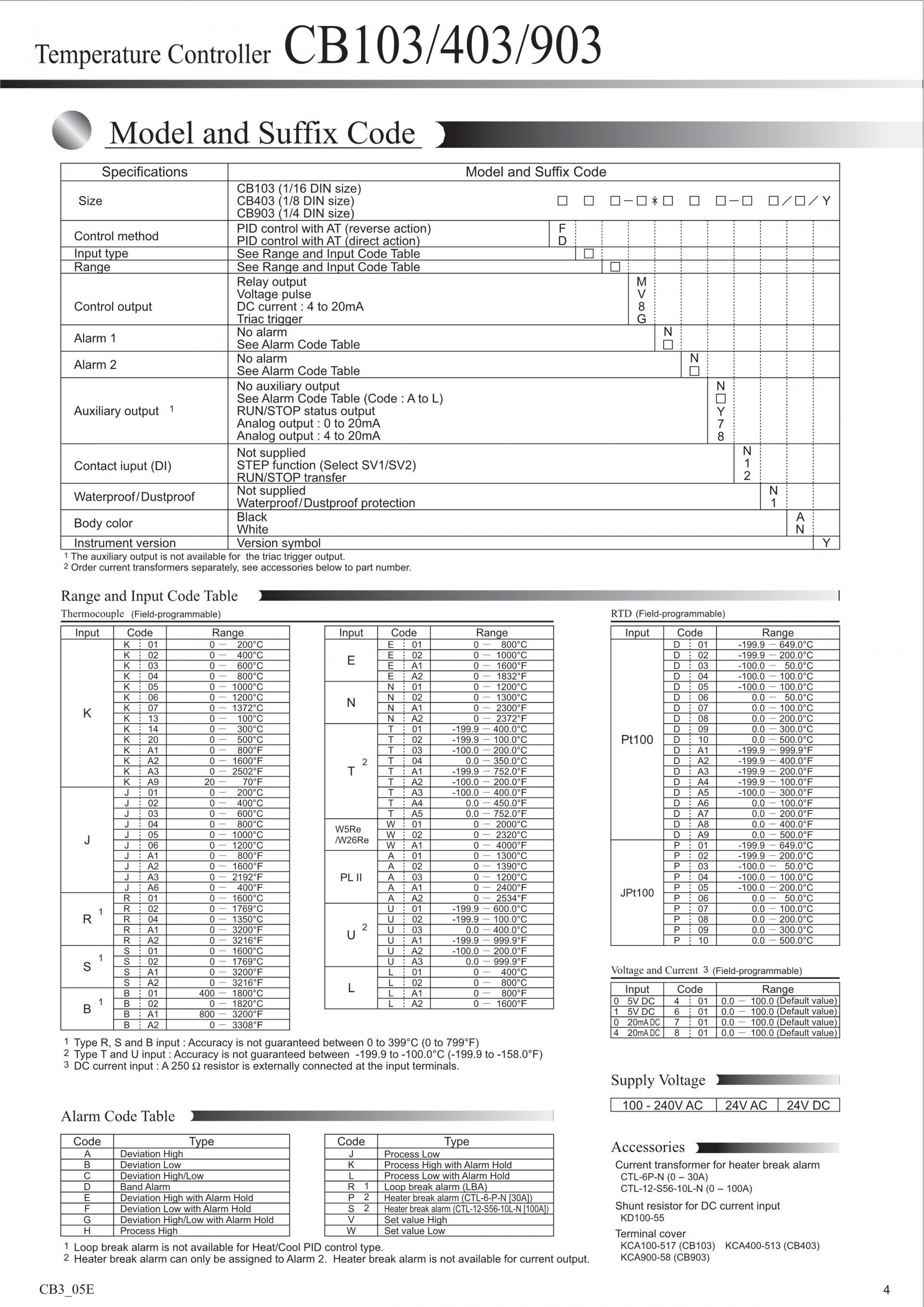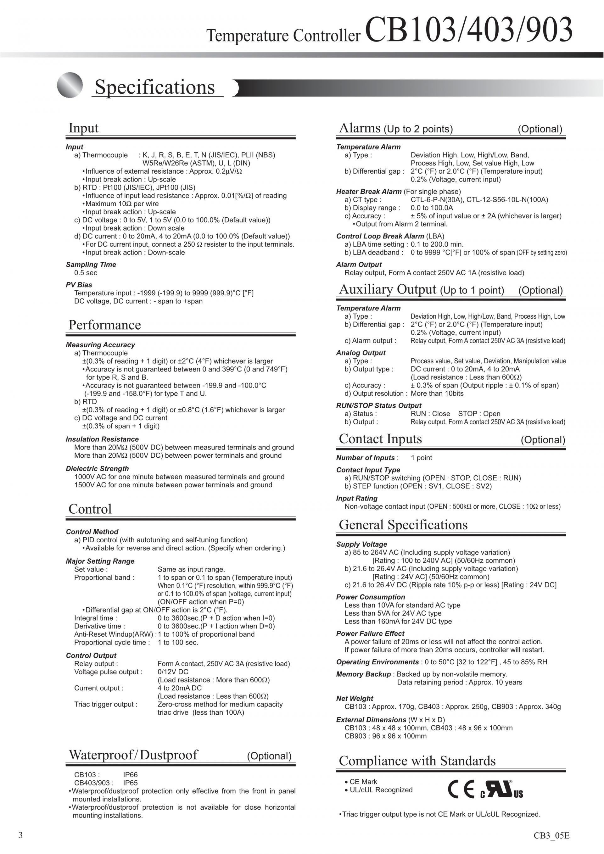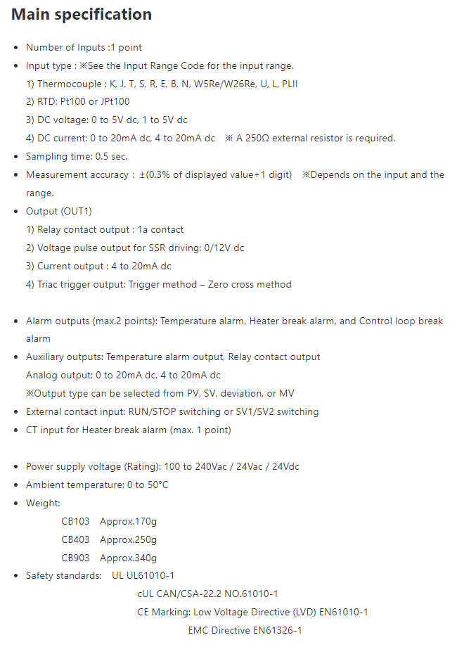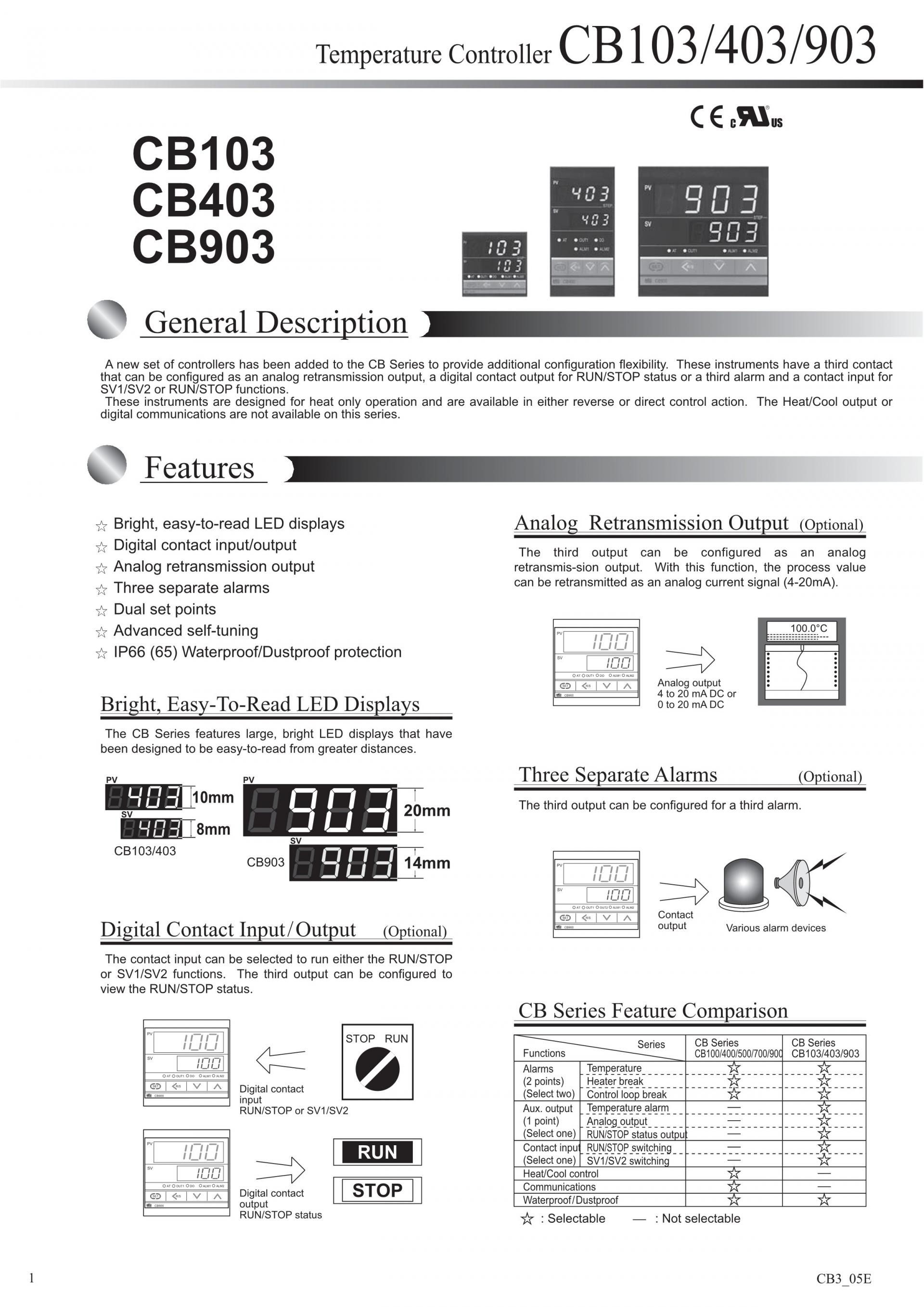 CB103 / CB403 / CB903 Digital controllers (Temperature controllers)