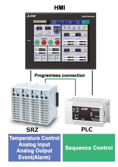 ![]() | Operation and monitoring of multi-loop control system can be centralized on the HMI for easy management of the system. A complete system building including a PLC can be supported. |