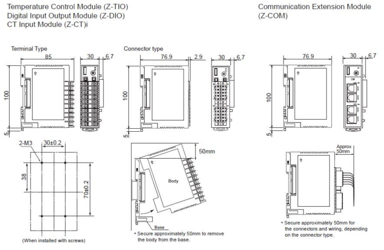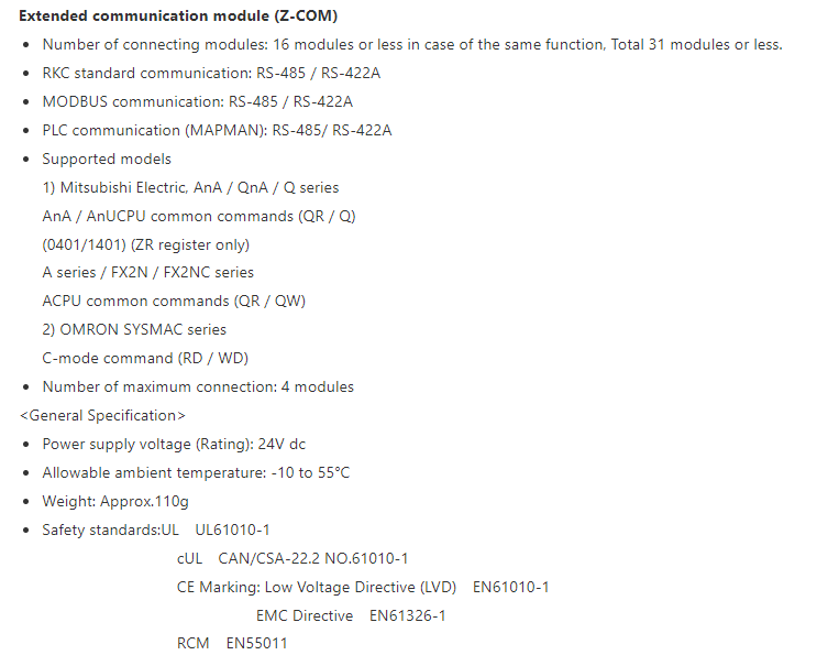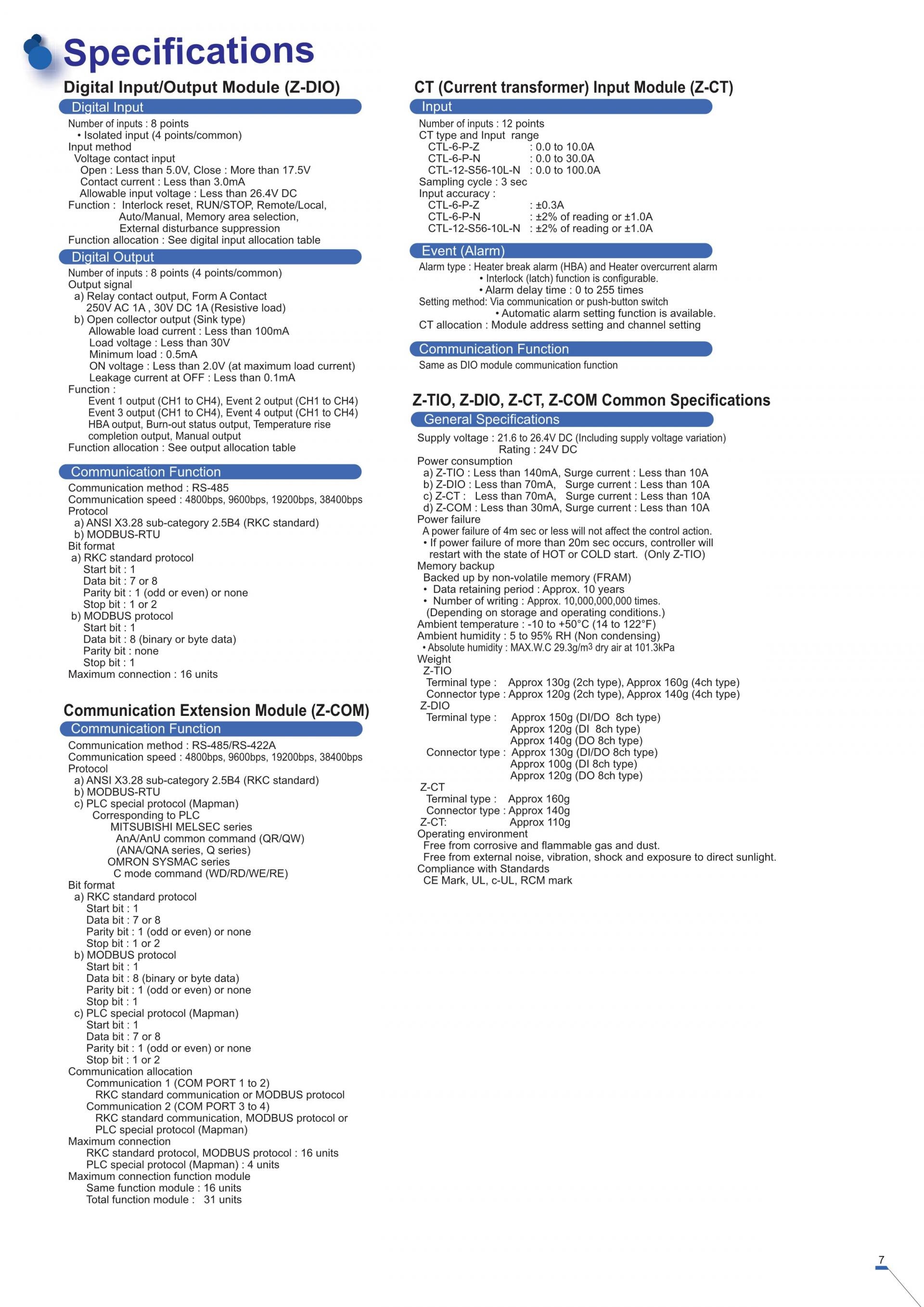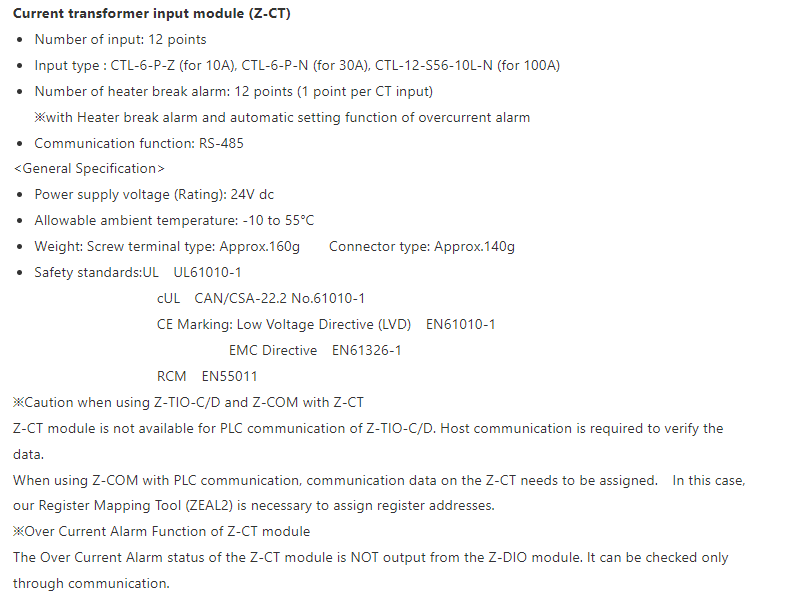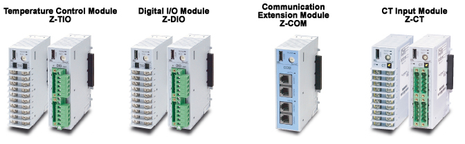 Z-TIO: Temperature control modules : Z-DIO: Digital input/output modules : Z-COM: Extended communication module : Z-CT: CT Input Module : |