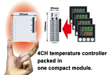 ![]() | One compact module enables 4-channel control. (2 channels per heat/cool control type) Up to 16 (max.64 channels) Temperature control modules (Z-TIO) can be connected. |