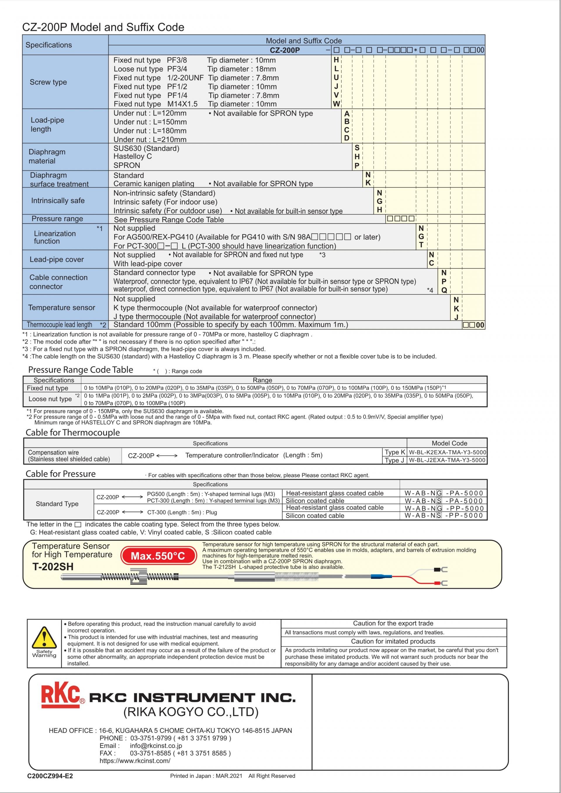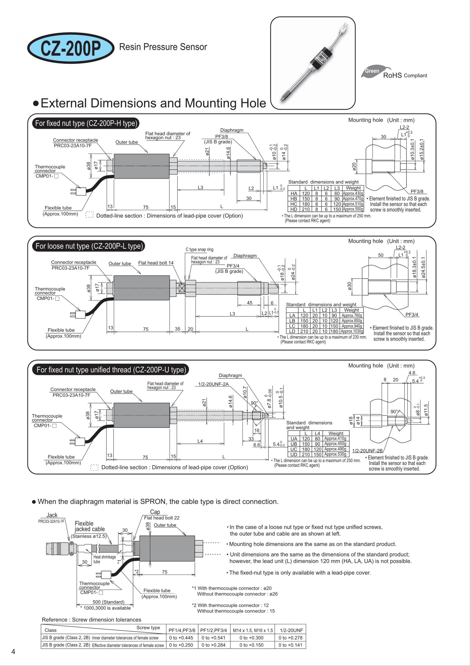 RKC CZ-200P Resin Pressure Sensor