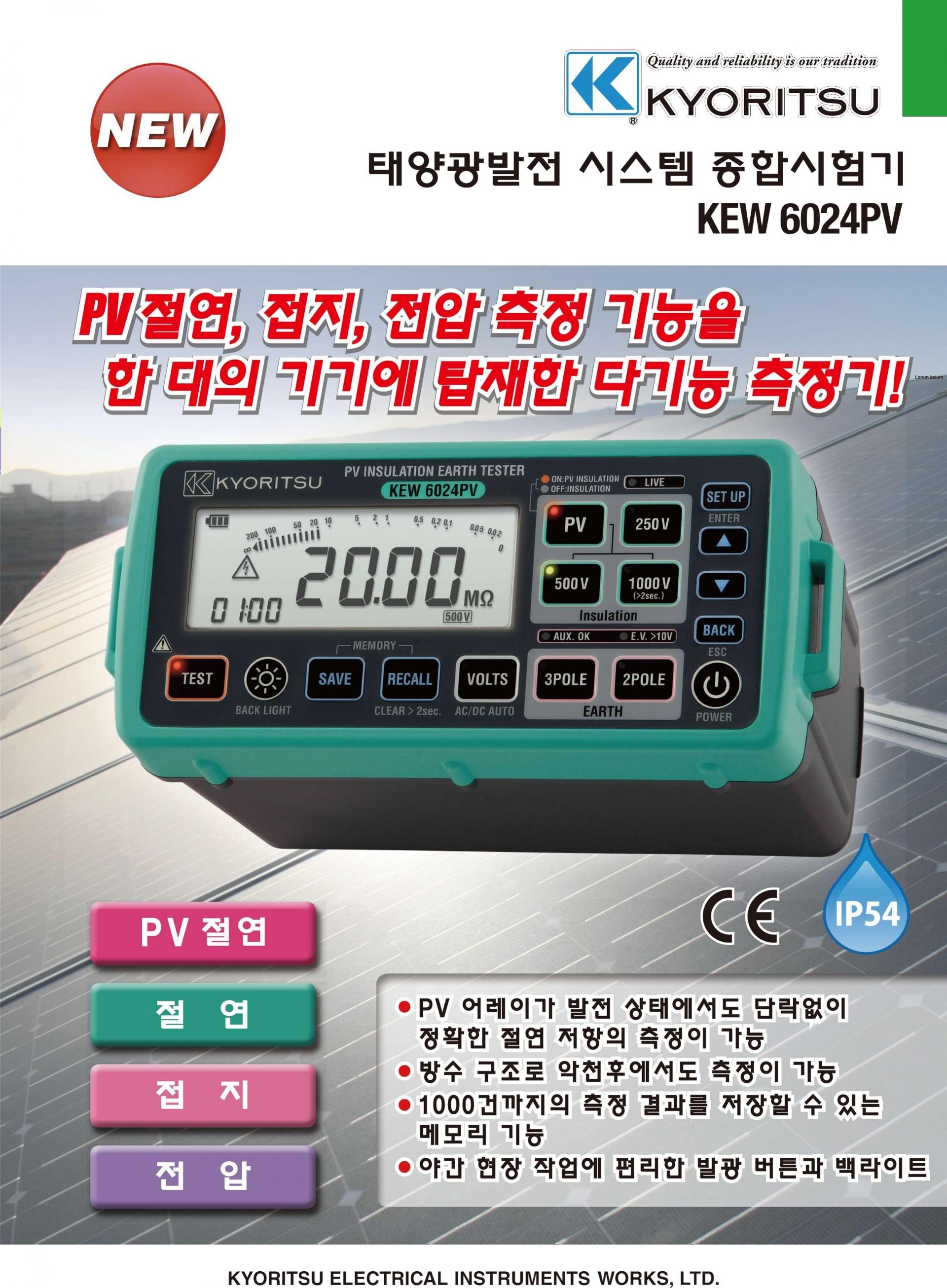 KYORITSU KEW 6024PV PV 절연 접지테스터