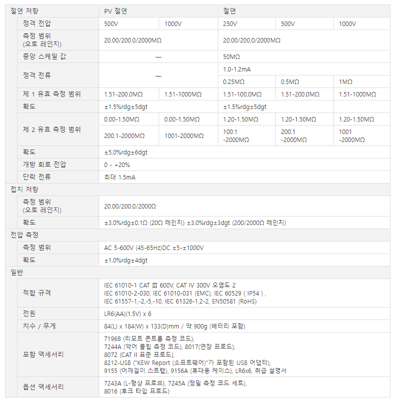 • 태양 전지(PV) 패널이 발전 상태에서도 절연 저항의 정확한 측정이 가능.