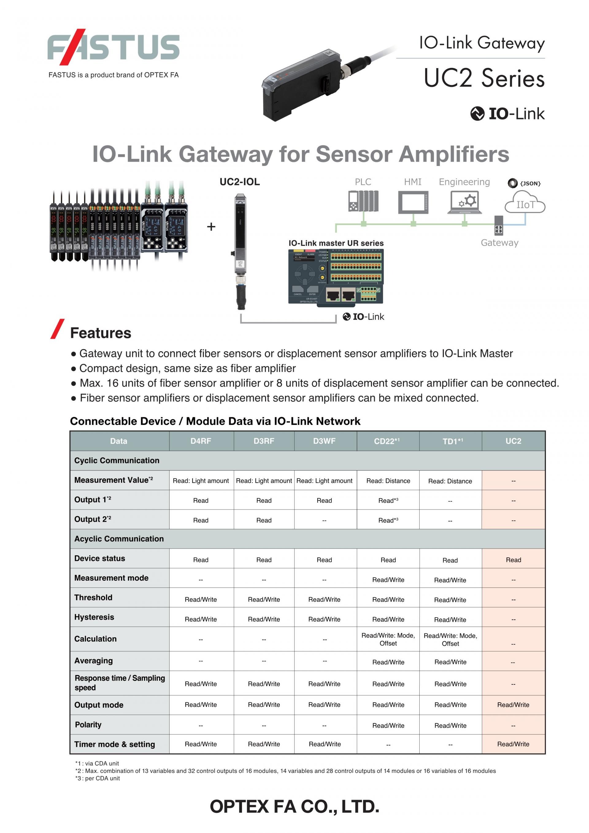 OPTEX FA UC2 SERIES IO-Link Gateway