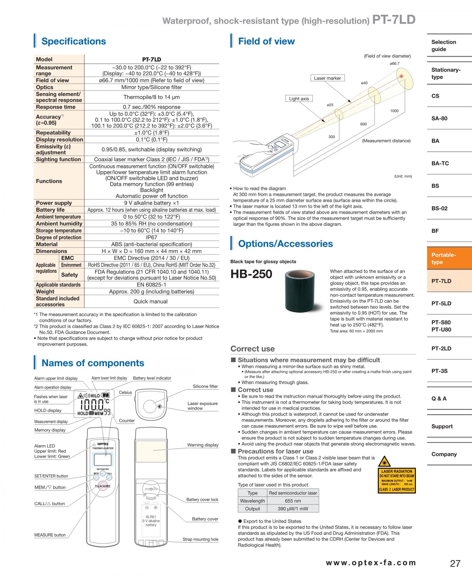 OPTEX FA PT-7LD Waterproof and Shock Resistant Thermometer
