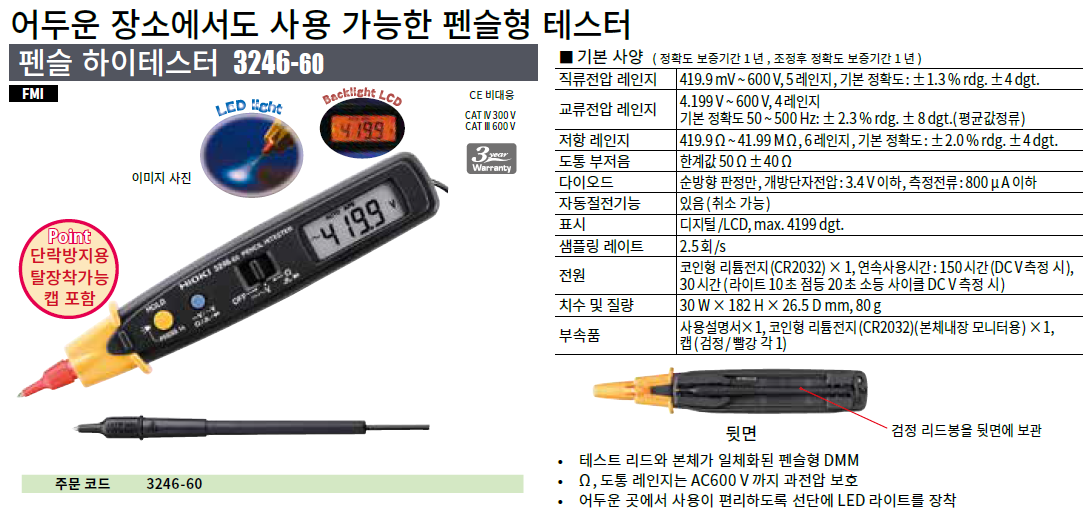 뒷면에 테스트 리드 수납 가능