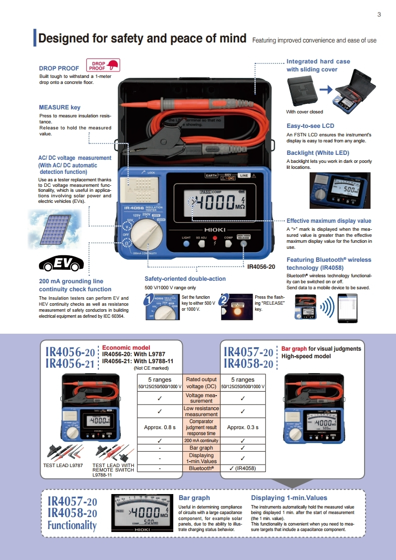 • 어두운 장소에서의 작업 효율을 향상시키는 고휘도 백색 LED 조명 , 전면을 비추는 라이트 장착 테스트 리드 (옵션 L9788-11 또는 L9788-10)