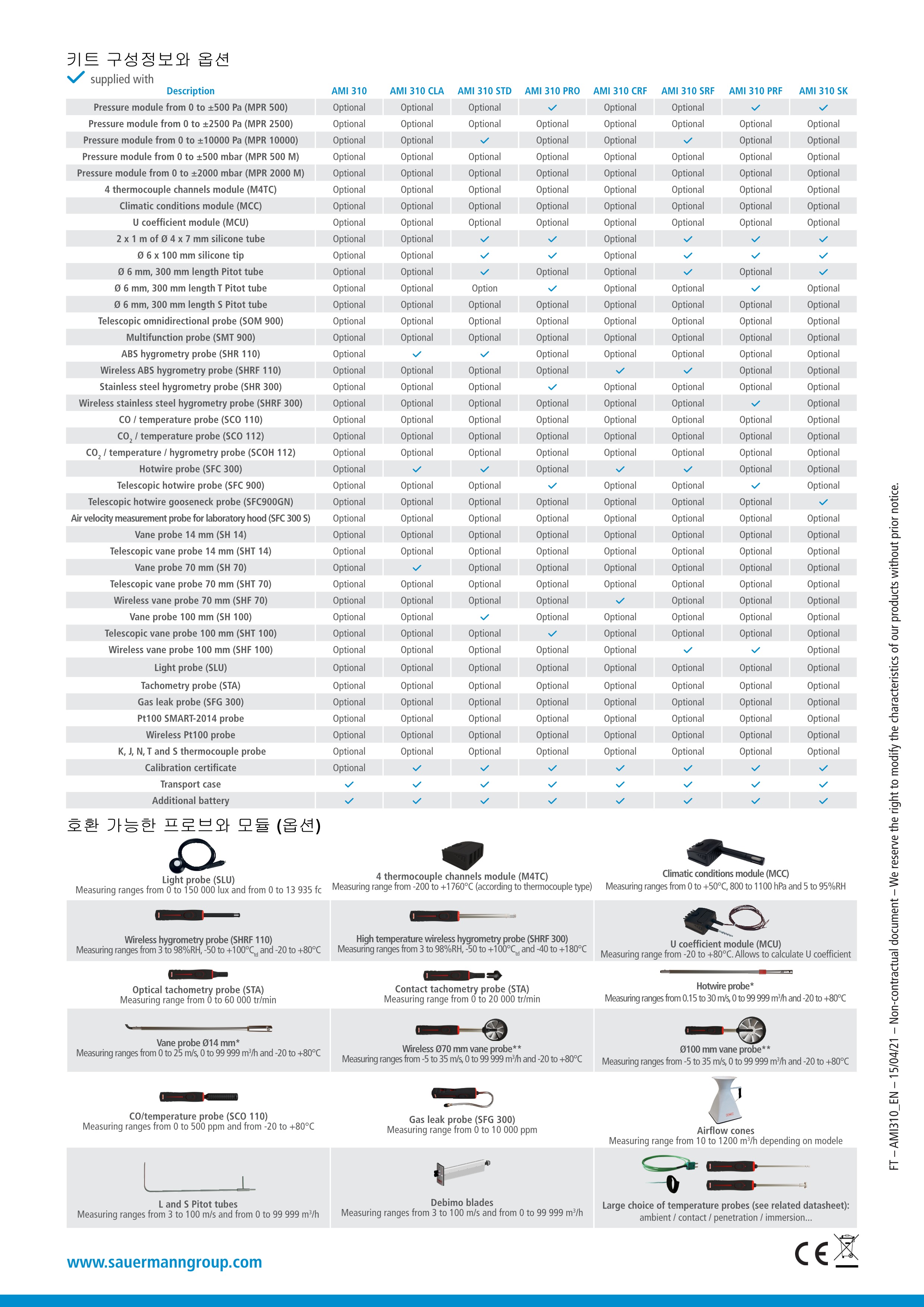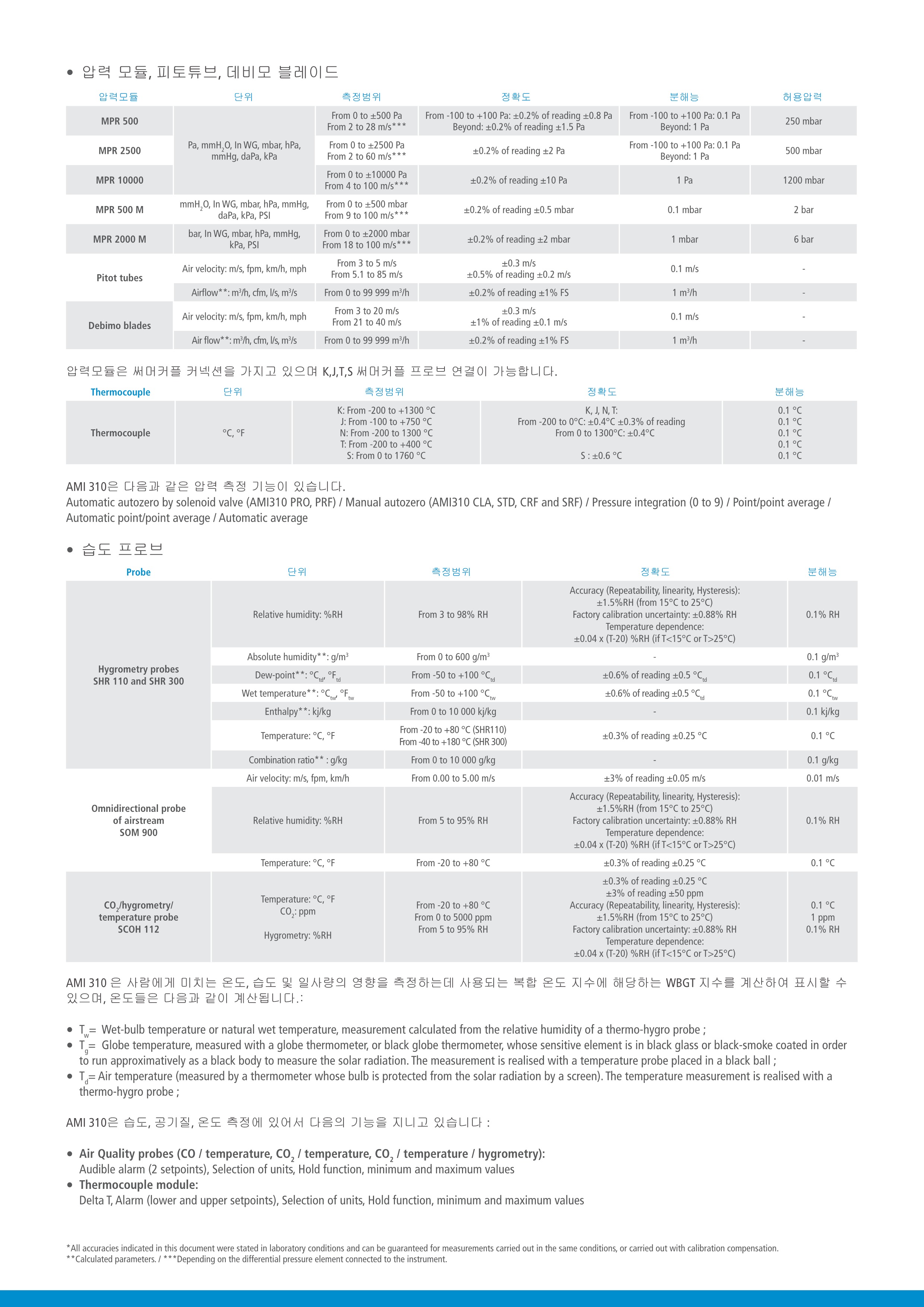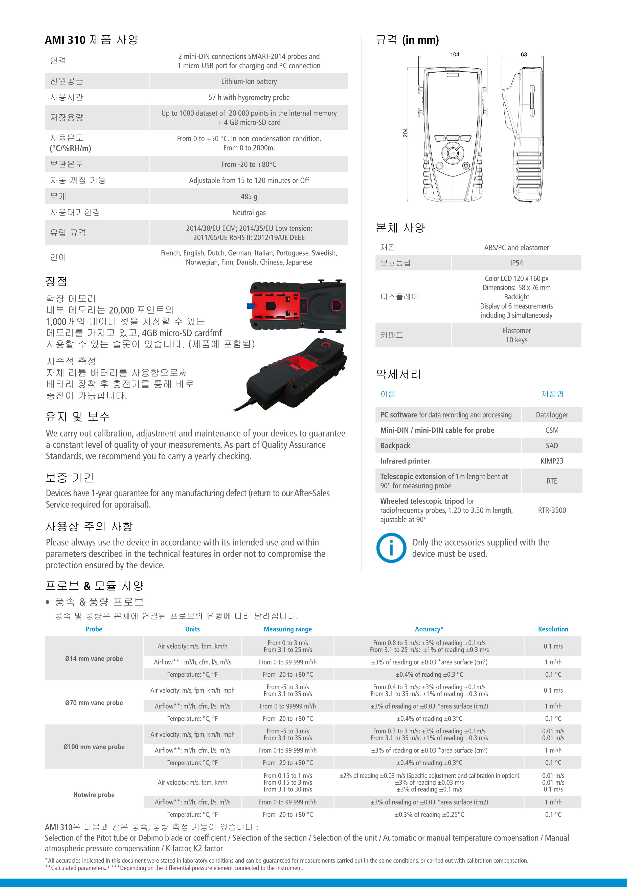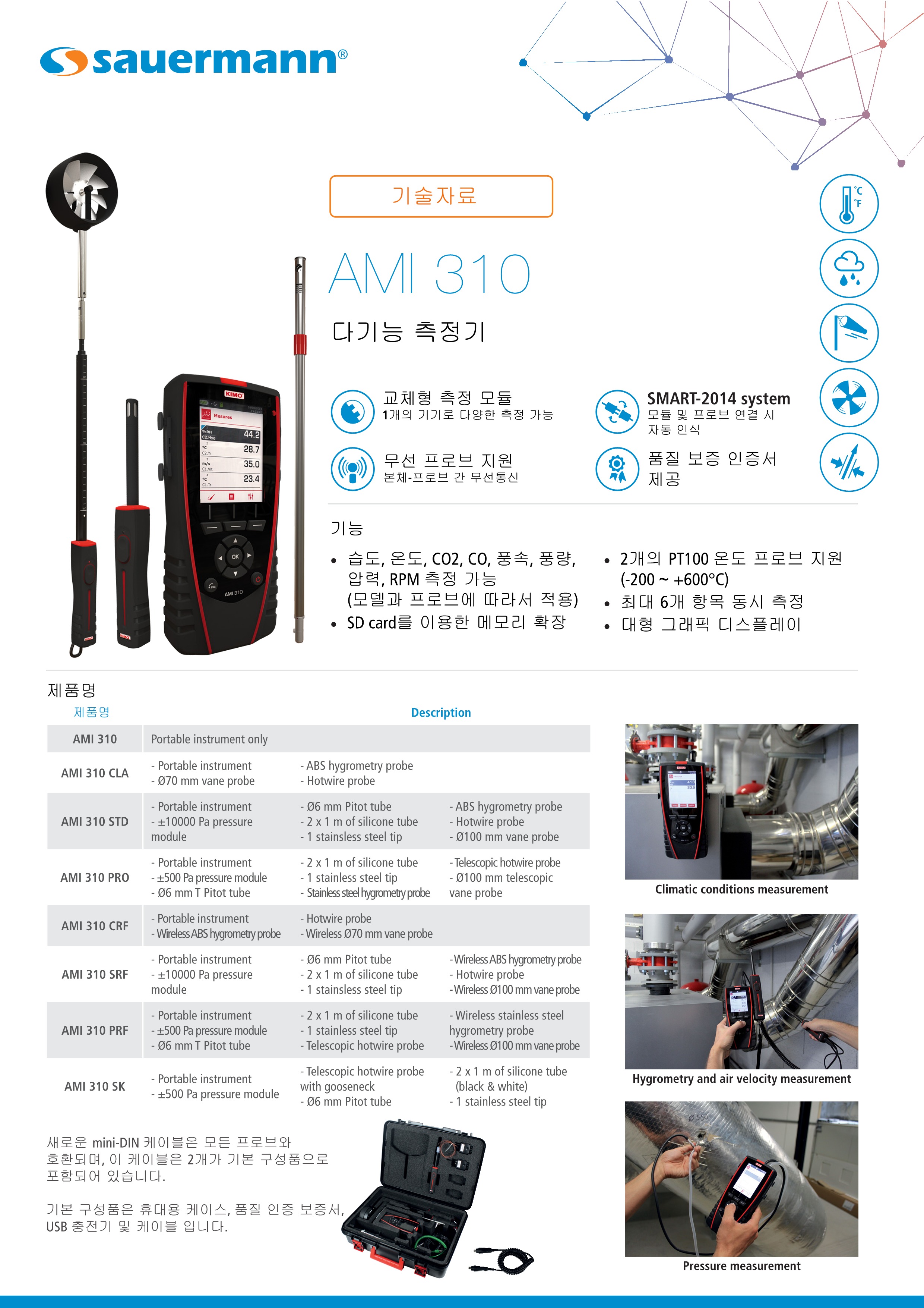 키모 KIMO AMI 310 다기능 압력계 & 풍속풍량계 & 온습도계 & 실내공기질측정기 & 데이터로깅 타코미터 & 가스디텍터