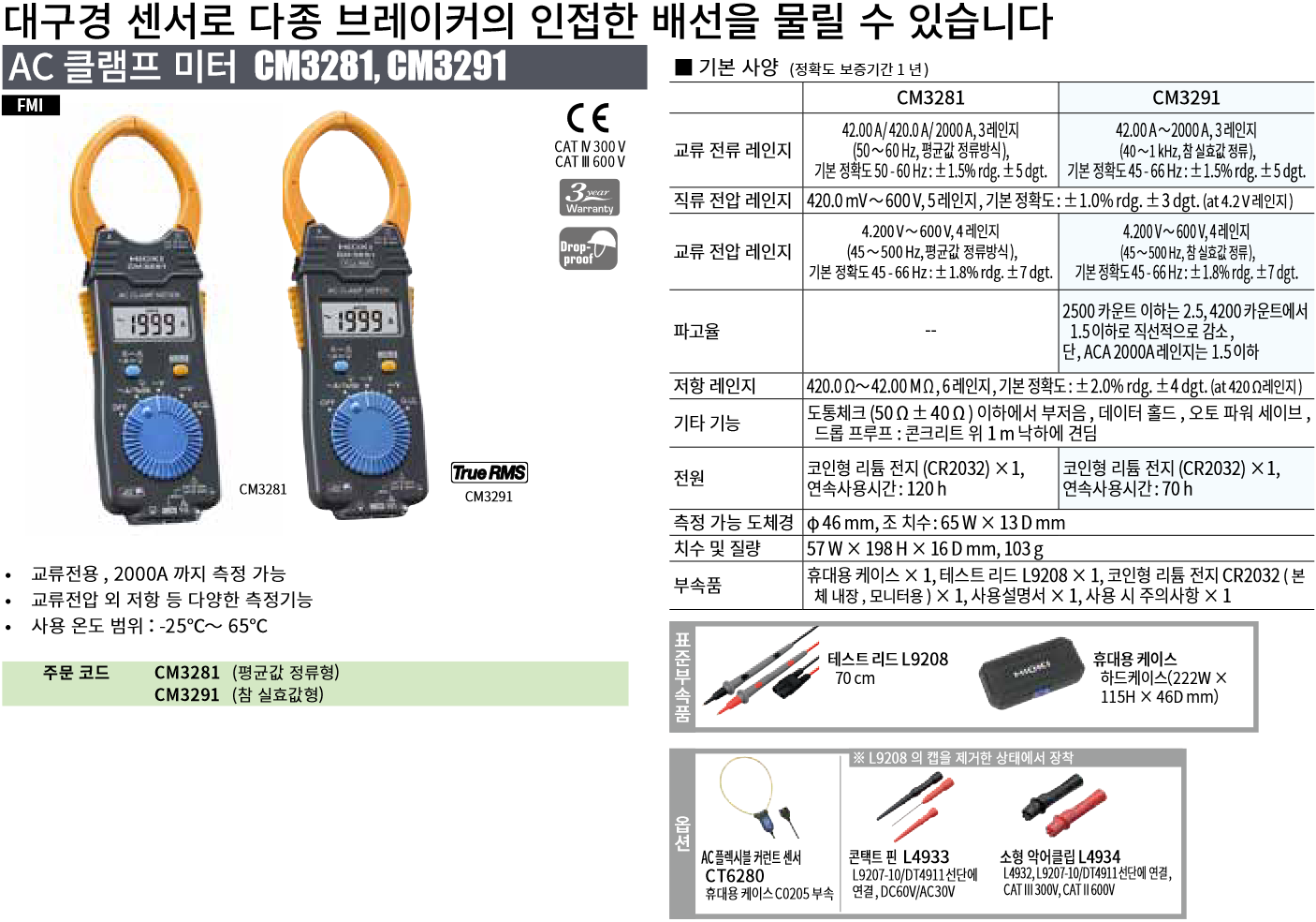 | CM3291 | True RMS (참 실효값 측정방식) |