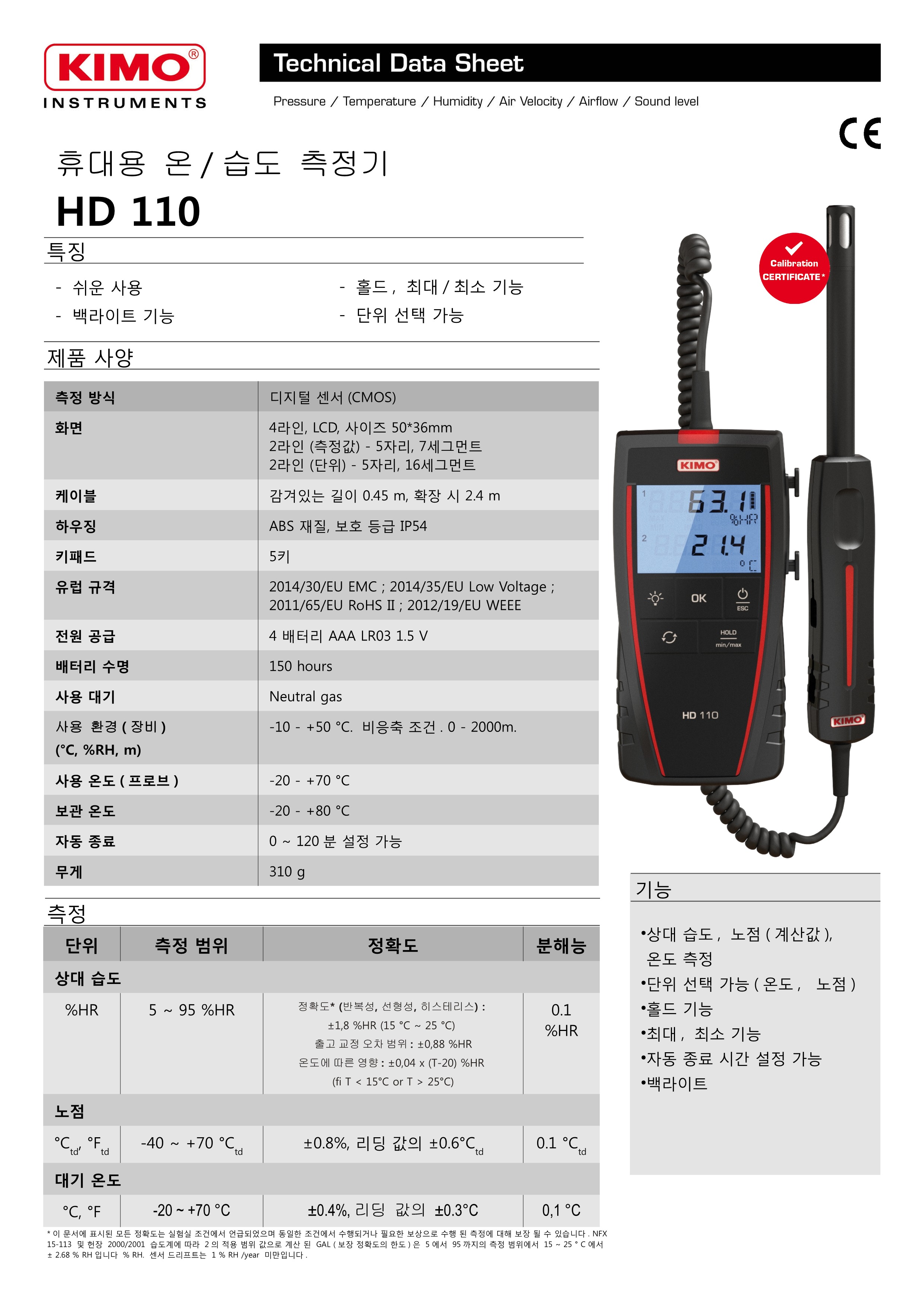 키모 KIMO HD 110 휴대용 온습도계
